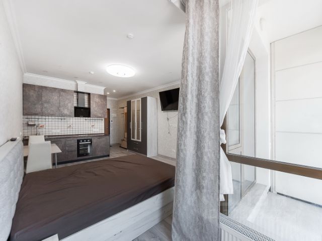 В студии выполнен современный дизайнерский ремонт. Пространство эргономично спланировано, все продумано до мелочей. Высота потолков 3,1 м, внутри много воздуха и света. Апартамент расположен на высоком этаже и, можно наслаждаться тишиной, забывая, что ты находишься в Центре Столицы. Продается со всей мебелью и техникой, которая входит в стоимость.