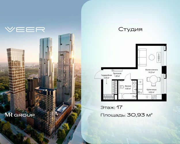 Старт продаж новой очереди! Продаётся студия общей площадью 28.19 м² без отделки в ЖК VEER на 11-м этаже 25 этажного дома. VEER.2 — вторая очередь футуристичного квартала бизнес-класса VEER. Это новая экосистема в престижном Западном округе Москвы, поражающая масштабностью внутренней инфраструктуры. ЖК находится всего в 5 минутах от Кутузовского проспекта и в 15 минутах от Сколково. Ансамбль из четырех стеклянных башен с доминантой в 237 метров разработан по принципу современного урбанизма и выражен в лаконичных объемах — параллелепипедах со сглаженными углами, которые придают зданиям утонченный вид. Расположение и транспортная доступность: • Образовательный комплекс в составе топовой школы, состоящий из двух зданий: основное на 1500 школьных и 450 дошкольных мест, отдельное здание детского сада на 300 мест. • Парк "Долина реки Сетунь" площадью более 700 гектаров • 15 минут по Кутузовскому проспекту до ужина в центре с видом на Москву-реку • Рядом МГУ, МГИМО, РАНХиГС и Академия ФСБ • м. "Давыдково" рядом и новые станции метро в будущем Инфраструктура: Двор в VEER.2 — это ассиметричные холмы, каменные "лабиринты", зеленые ковры и хвойные островки с единой живой экосистемой. Здесь есть все: • Павильон умиротворения Место отдыха под навесом в спокойной части двора, окруженное деревьями. • Активная тропа Тактильная дорога из камней разного диаметра для расслабляющих прогулок. • Бизнес-гарден Оборудованное пространство для работы на свежем воздухе со столом и встроенными розетками. • Детская площадка Двухуровневая площадка "Ботаника" с песочницей, переговорной трубой и горкой "Дружба". Компания MR Group предлагает своим клиентам специальные условия приобретения квартир в рамках программ ипотечного кредитования от банков-партнеров. Купить квартиру-студию рядом с метро Рабочий поселок.