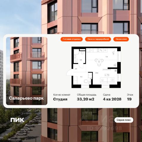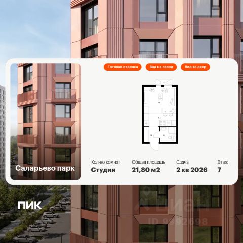 Продаётся квартира-студия площадью 29,7 кв.м на 5 этаже 16 этажного дома (Корпус 82.2, Секция 2) проекта ПИК Саларьево парк. Светлый просторный подъезд на уровне земли, функциональная планировка, большие окна, c отделкой. Жилой район "Саларьево парк" расположен в Новой Москве, в четырёх километрах от МКАД по Киевскому шоссе. Две станции метро: "Саларьево" и "Филатов луг", — находятся в пешей доступности от проекта. Дойти до них можно за 510 минут. В квартале уже создана качественная среда, где есть абсолютно всё для полноценной жизни, работы и отдыха. Благодаря удобному расположению проекта всё важное будет рядом: детские сады, школы, кафе и рестораны, шопинг в торговых центрах, фитнес и даже аэропорт. Все корпуса в квартале гармонично сочетаются, образуя единую городскую среду. Между собой их объединяет невысокая этажность и натуральная цветовая гамма. Здесь приятно гулять и проводить время на улице всей семьёй. В "Саларьево парке" создана уникальная образовательная среда, включающая в себя шесть школ, рассчитанных на 6 250 учеников. Две из них уже открыты, их посещает 2 300 детей. Также на территории "Саларьево парка" находится 12 детских садов, один из которых с бассейном. Сейчас уже открыты 7 садов. В "Саларьево парке" открыта уникальная игровая площадка — PlayHub "Оригами". Здесь есть ручей, горка-труба и рельефные холмы. Взрослые смогут отдохнуть в уютном кафе, пока дети играют. Также на территории проекта есть SportHub — большая спортивная зона, разделённая по интересам и возрастам. Здесь можно заниматься разными видами спорта: футболом, баскетболом, волейболом и стритболом. Зимой центральную часть площадки превращают в каток. Во дворах-парках жилого квартала есть места для отдыха, детские и спортивные площадки. На первых этажах домов расположены магазины, кафе и полезные сервисы. Также вблизи проекта есть несколько масштабных торговых центров. До ТЦ "Саларис" пять минут пешком, до "Рио", Metro Cash & Carry и "Леруа Мерлен" — пять минут на автомобиле. Артикул 1032312 (Застройщик ООО "Специализированный Застройщик "Тирон") Продается квартира-студия рядом с метро Румянцево.