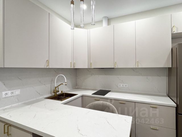 - Кухонный гарнитур с встроенной техникой (посудомойка, варочная панель, духовой шкаф, вытяжка, холодильник)