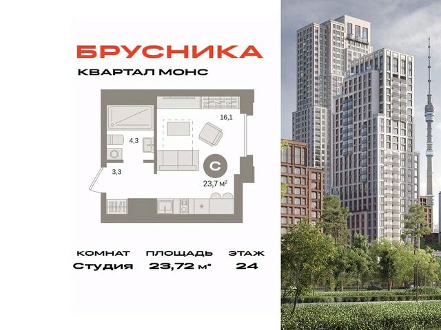 Студия в квартале "МОНС". Особенности планировки: без отделки, терраса на крыше. Квартиру можно купить онлайн. В квартире выполнена отделка "под чистовую". Установлены окна с двойным стеклопакетом, радиаторы с терморегуляторами. На полу цементно-песчаная стяжка. В квартиры заведены кабели для интернета и ТВ. Входная сейф-дверь не требует замены. Организован поквартирный учёт энергоресурсов (водоснабжение, отопление, электричество). Квартал "МОНС" пронизан атмосферой локации, её энергетикой. Она воплощена в общей композиции, чистоте её форм, в графичных и динамичных силуэтных линиях. Пять домов от 2 до 45 этажеи поддерживают идею монументальности и одновременной лёгкости, но при этом у каждого из них сформировался свой характер. "Игра" с разными высотами, текстурой и формой фасадов позволила запустить в квартиры и дворы больше света, сделать пространства между домами проницаемыми и воздушными. Застройщик — компания Брусника. Инфраструктура квартала "МОНС" включает детское образовательное учреждение, магазины, предприятия услуг и офисные помещения. В шаговой доступности находятся: парки ВДНХ и Останкино, школа и детский сад, супермаркеты Перекресток и Вкусвилл, фитнес-клубы, студии растяжки и йоги. Объявление от застройщика. Ипотека, материнский капитал. Обмен — один из способов покупки. Обмен подойдёт, если вы хотите быстро поменять старую квартиру на новую. Получить ипотеку или рассрочку, а также обменять квартиру можно онлайн. Запишитесь на онлайн-презентацию по телефону или на сайте. квартиры в нашей базе: МОН01-Ж2.21.7. Квартира-студия рядом с метро Тимирязевская.