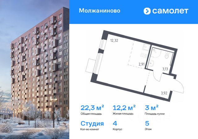 Строим кварталы для жизни с заботой о будущем. Предлагается квартира студия комфорт-класса 25,91 кв.м в корпусе 5 на 3 этаже, в ЖК "Молжаниново" Квартира без отделки. Доступность опции "отделка" и возможность комплектации мебелью и декором уточняйте у застройщика. Приобрести квартиру возможно по специальным акциям от застройщика, с текущими условиями акций можно ознакомиться в блоке "Акций". Цена динамическая и может отличаться, уточняйте актуальность у застройщика. Жилой комплекс "Молжаниново" — это место, где каждый маршрут продуман так, чтобы вы проводили больше времени с близкими, а не в дороге. Ставьте паруса в канале имени Москвы, устраивайте пикники в Химкинском лесу или ищите редких птиц в Захарьинской пойме. Жилой комплекс сочетает в себе комфорт городской жизни с преимуществами природы. С одной стороны — московская регистрация, собственная инфраструктура, благоустроенные дворы с детскими площадками и зонами отдыха. С другой — ручей и пруд прямо на территории, а также много леса вокруг.