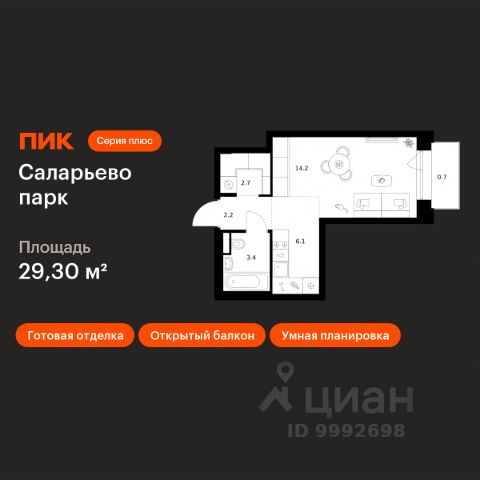 Продаётся квартира-студия площадью 29,3 кв.м на 3 этаже 24 этажного дома (Корпус 82.4, Секция 4) проекта ПИК Саларьево парк. Светлый просторный подъезд на уровне земли, функциональная планировка, большие окна, предчистовая отделка. Жилой район "Саларьево парк" расположен в Новой Москве, в четырёх километрах от МКАД по Киевскому шоссе. Две станции метро: "Саларьево" и "Филатов луг", — находятся в пешей доступности от проекта. Дойти до них можно за 510 минут. В квартале уже создана качественная среда, где есть абсолютно всё для полноценной жизни, работы и отдыха. Благодаря удобному расположению проекта всё важное будет рядом: детские сады, школы, кафе и рестораны, шопинг в торговых центрах, фитнес и даже аэропорт. Все корпуса в квартале гармонично сочетаются, образуя единую городскую среду. Между собой их объединяет невысокая этажность и натуральная цветовая гамма. Здесь приятно гулять и проводить время на улице всей семьёй. В "Саларьево парке" создана уникальная образовательная среда, включающая в себя шесть школ, рассчитанных на 6 250 учеников. Две из них уже открыты, их посещает 2 300 детей. Также на территории "Саларьево парка" находится 12 детских садов, один из которых с бассейном. Сейчас уже открыты 7 садов. В "Саларьево парке" открыта уникальная игровая площадка — PlayHub "Оригами". Здесь есть ручей, горка-труба и рельефные холмы. Взрослые смогут отдохнуть в уютном кафе, пока дети играют. Также на территории проекта есть SportHub — большая спортивная зона, разделённая по интересам и возрастам. Здесь можно заниматься разными видами спорта: футболом, баскетболом, волейболом и стритболом. Зимой центральную часть площадки превращают в каток. Во дворах-парках жилого квартала есть места для отдыха, детские и спортивные площадки. На первых этажах домов расположены магазины, кафе и полезные сервисы. Также вблизи проекта есть несколько масштабных торговых центров. До ТЦ "Саларис" пять минут пешком, до "Рио", Metro Cash & Carry и "Леруа Мерлен" — пять минут на автомобиле. Артикул 1032513 (Застройщик ООО "Специализированный Застройщик "Тирон") Продам квартиру-студию в поселении Московский в Москве.