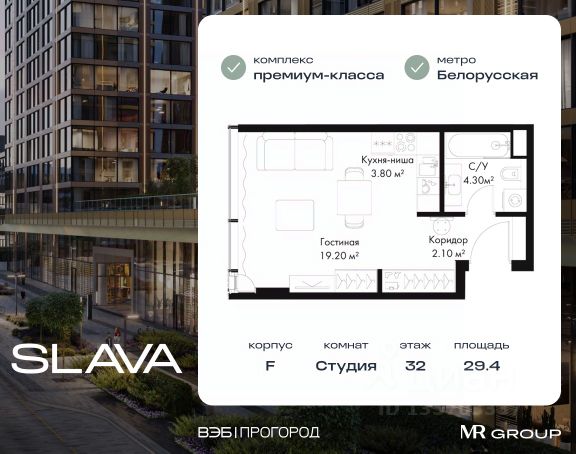 Квартиры премиум-класса в жилом комплексе SLAVA у м. "Белорусская" от застройщика. В продаже студия площадью 29.80 м² на 4-м этаже корпуса G. Новый современный жилой комплекс премиум-класса SLAVA расположен в той части центра, где традиция соединяется с прогрессивными городскими тенденциями. Здесь историческая Москва встречается с передовым миром. Популярные театры и старинные церкви соседствуют с современным деловым кварталом и гастрономическим кластером Депо. SLAVA находится всего в 5 мин. пешком от м. "Белорусская", по-новому открывая Ленинградский проспект. Проект был разработан легендарным архитектором Хельмутом Яном, основателем чикагского архитектурного бюро Jahn. Его работы отмечены множеством наград и реализованы в мегаполисах по всему миру. По замыслу архитекторов, жилой комплекс образуют четыре высотные башни, соединенные одноэтажным стилобатом "Хронограф". Здесь, на первом уровне, открытые и закрытые общественные пространства: небольшие сады, места для встреч и отдыха, кафе, рестораны, магазины, спортивный центр и даже выставочное пространство. Важнейшей особенностью пространства является его всесезонность: благодаря правильной организации, ландшафтному дизайну, инженерной инфраструктуре здесь будет уютно и в жару, и в xолод, и в ненастье. На втором уровне стилобата расположится приватный парк для жильцов. Особенности комплекса: - Идеальное расположение в престижной части Москвы (10 мин. от Кремля) - Панорамное остекление - Подземный паркинг с дизайнерской отделкой - Современные инженерные системы - Продуманная внутренняя инфраструктура - Приватный сад 7700 кв.м. Расположение комплекса: - 5 минут до станции метро "Белорусская" - 3 минуты до ТТК - 8 минут до "Садового кольца" Компания MR предлагает своим клиентам специальные условия приобретения квартир в рамках программ ипотечного кредитования от банков-партнеров.