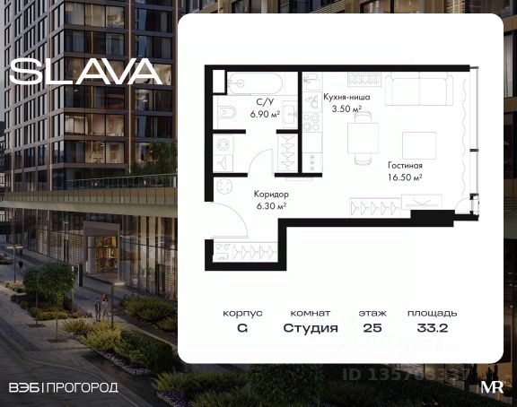 Квартиры премиум-класса в жилом комплексе SLAVA у м. "Белорусская" от застройщика. В продаже студия площадью 28.50 м² на 12-м этаже корпуса G. Новый современный жилой комплекс премиум-класса SLAVA расположен в той части центра, где традиция соединяется с прогрессивными городскими тенденциями. Здесь историческая Москва встречается с передовым миром. Популярные театры и старинные церкви соседствуют с современным деловым кварталом и гастрономическим кластером Депо. SLAVA находится всего в 5 мин. пешком от м. "Белорусская", по-новому открывая Ленинградский проспект. Проект был разработан легендарным архитектором Хельмутом Яном, основателем чикагского архитектурного бюро Jahn. Его работы отмечены множеством наград и реализованы в мегаполисах по всему миру. По замыслу архитекторов, жилой комплекс образуют четыре высотные башни, соединенные одноэтажным стилобатом "Хронограф". Здесь, на первом уровне, открытые и закрытые общественные пространства: небольшие сады, места для встреч и отдыха, кафе, рестораны, магазины, спортивный центр и даже выставочное пространство. Важнейшей особенностью пространства является его всесезонность: благодаря правильной организации, ландшафтному дизайну, инженерной инфраструктуре здесь будет уютно и в жару, и в xолод, и в ненастье. На втором уровне стилобата расположится приватный парк для жильцов. Особенности комплекса: - Идеальное расположение в престижной части Москвы (10 мин. от Кремля) - Панорамное остекление - Подземный паркинг с дизайнерской отделкой - Современные инженерные системы - Продуманная внутренняя инфраструктура - Приватный сад 7700 кв.м. Расположение комплекса: - 5 минут до станции метро "Белорусская" - 3 минуты до ТТК - 8 минут до "Садового кольца" Компания MR предлагает своим клиентам специальные условия приобретения квартир в рамках программ ипотечного кредитования от банков-партнеров.