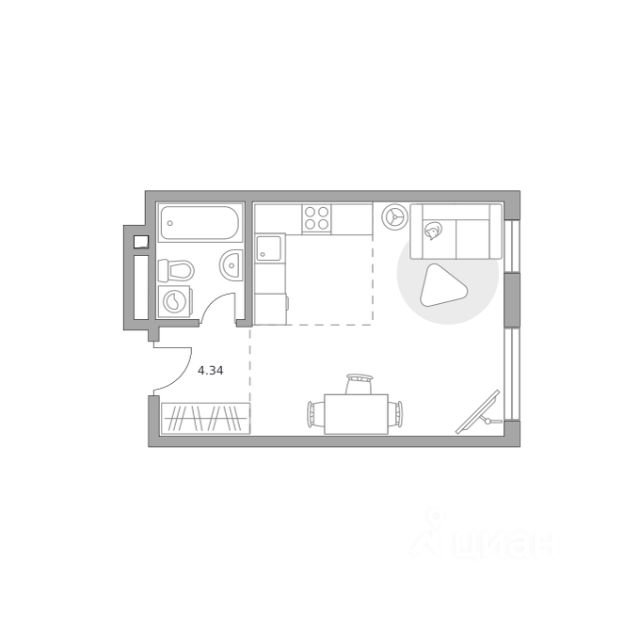 Продаётся студия 862, площадью 32,36 м², на 19 этаже в ЖК "Гранель Коломенское" корпус 1. Стоимость — от 14790578 руб. Квартира без отделки, планировка односторонняя, окна во двор.