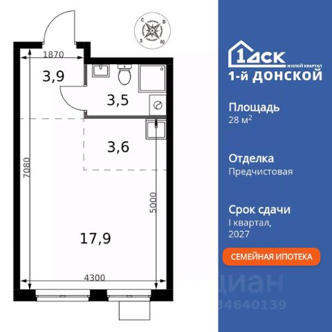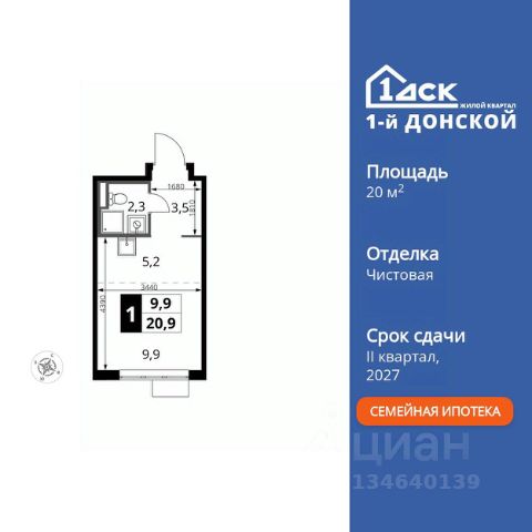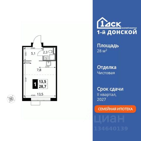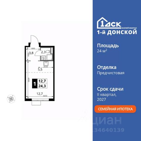 Прямая продажа от застройщика! Жилой Комплекс класса Комфорт Плюс. Продаётся квартира-студия номер 687 общей площадью 24.4 кв.м. на 24-м этаже 24 этажного здания. Предчистовая отделка. Цена с учётом скидки. Особенности квартиры: - МЦД-5 в пешей доступности - Квартал с собственной набережной - Свои 2 детских сада и школа - Организуем показ в удобное для вас время! - Линейная планировка - максимальная функциональность и удобство. - Увеличенная высота потолков - ощущение простора и легкости. - Ниша под шкаф - компактное и удобное место для вещей. Квартира с предчистовой отделкой. Вам не придется заниматься черновыми и трудоёмкими работы, а чистовую отделку и дизайн - сделайте на свой вкус. Информация о комплексе: ЖК "1-й Донской" в 7 км от МКАД: гармония городского комфорта и природы. Квартиры на 2-3 стороны света, форма секций и разная этажность создают динамичную архитектуру. Тёплая палитра фасадов и подсветка подчеркивают образ. Рядом - Ермолинский парк, Видновский лесопарк и Жуковский парк. Природа воздействует на все уровни восприятия: от видов до звуков и ароматов. Идеальный баланс для жизни в гармонии с окружающей средой. Транспортная доступность: Комплекс удобно расположен в 7 км от МКАД по трассе М-4 Дон (через Видное). Расстояние до Каширского шоссе составляет 12 км. Добраться до метро и центра Москвы позволяет развитая сеть маршрутов общественного наземного транспорта. Действующая ж/д станция Калинина Павелецкого направления в 15-17 минутах ходьбы (МЦД-5 в 2025-2026 гг). Внутренняя инфраструктура: "1-й Донской": продуманная среда в развивающемся районе. На территории - муниципальные школа и 2 детских сада, поликлиника, торговый центр с площадью для мероприятий. Сеть пешеходных маршрутов ведёт к магазинам и кафе, отделённым от дорог зелёными фито-стенами. Сквозные подъезды с панорамным остеклением и входами с улицы и двора наполнены светом. Всё для комфортной жизни в шаговой доступности, от повседневных нужд до общественных пространств. Квартира с предчистовой отделкой - ваш дизайн без черновых работ