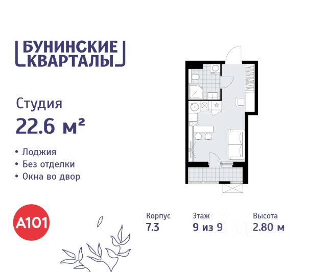 Продается студия 255 в новостройке ЖК "Бунинские кварталы" по адресу Москва, ТиНАО, Новомосковский АО, Сосенское С/П, жилой комплекс Бунинские Кварталы, корп. 2.3. Общая площадь квартиры - 21.50 кв. м., этаж 9 из 9, секция 3. Тип проекта, по которому построен дом - монолит, компания-застройщик - ООО "А101". Стоимость квартиры - 9983310 Р. ПРЕДЛОЖЕНИЯ ОТ ЗАСТРОЙЩИКА В ФЕВРАЛЕ 2026: Скидки до 10% на все квартиры. Только в офисах продаж до 28 февраля. Ипотека от 13,9 % для всех! На весь срок. "Семейная ипотека" вернулась. Ставка от 3,5 % на весь срок! Без удорожания! Выгодное ипотечное комбо: Ипотека от 2200 р./мес. и от 6 % после рождения ребёнка! Ипотека для всех "Держи пять!" - ставка 5 % на 2 года! *более подробную информацию по скидкам и акциям уточняйте в отделе продаж ЖК "Бунинские кварталы" строится на юго-западе Москвы. Монолитные дома в лаконичной стилистике гармонируют с живописной природой. Из любой точки района удобно добираться до природных объектов, ключевых транспортных узлов, крупных торговых, спортивных, деловых и медицинских центров. Концепция уникального благоустройства района - "Выходи гулять!". Здесь появятся эстрада для районных творческих мероприятий, спортивные и игровые площадки, скейт-парк, дружелюбные пространства для домашних питомцев, благоустроенная набережная Ивановского пруда. В районе формируется собственная развитая инфраструктура: современные школа на 1100 мест и 2 детских сада на 540 малышей, магазины у дома и сетевые супермаркеты, фитнес, кафе, салоны, детские развивающие центры. Крытый каток "Самолёт Арена" - в 10 минутах пешком. За 15 минут можно дойти до действующей станции метро "Потапово". Предусмотрены удобные автомобильные выезды на проспект Куприна и улицу Александры Монаховой. Особенности "Бунинских кварталов": - ст. метро "Потапово" - 15 минут пешком - своя школа и детские сады - безопасные дворы без машин с системой контроля доступа - насыщенная инфраструктура - в шаговой доступности и на первых этажах домов