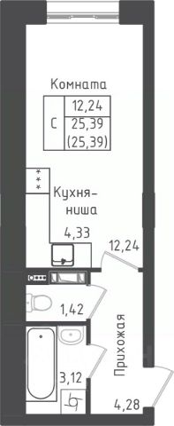 Продаётся студия в строящемся доме (Дом 1), срок сдачи: I-кв. 2026, общей площадью 25.39 кв.м., на 5 этаже. Квартал жилой застройки "Зеленый Оазис-Город"