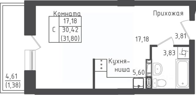 Продаётся студия в строящемся доме (Дом 1), срок сдачи: I-кв. 2026, общей площадью 31.53 кв.м., на 5 этаже. Квартал жилой застройки "Зеленый Оазис-Город"