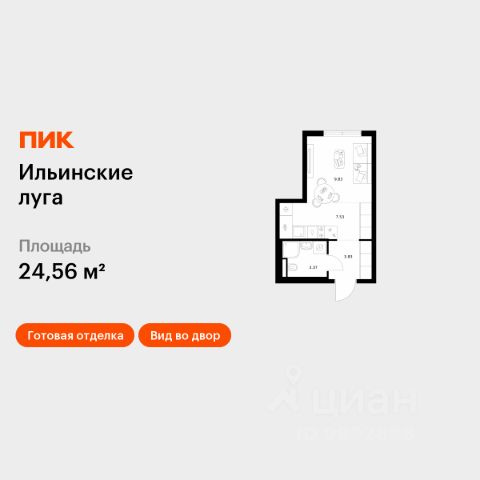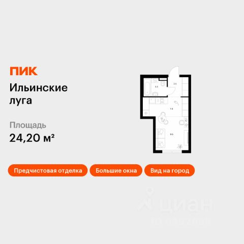Продаётся квартира-студия площадью 24,2 кв.м на 9 этаже 9 этажного дома (Корпус 4.3, Секция 5) проекта ПИК Ильинские луга. Светлый просторный подъезд на уровне земли, функциональная планировка, большие окна, предчистовая отделка. Жилой район "Ильинские луга" находится в 10 километрах от МКАД по Новорижскому шоссе, в 20 минутах на автомобиле от станций метро "Волоколамская", "Тушинская" и "Строгино". В будущем ближе к проекту, в 9 минутах пути на машине, откроется станция "Ильинская" Рублёво-Архангельской линии, которая будет соединять Арбатско-Покровскую линию и Большую кольцевую линию. Сейчас в квартале начались продажи в корпусах 3.2, 3.3, 3.4, 3.5 и 3.6. "Ильинские луга" — масштабный проект, в который входит девять детских садов, четыре школы и поликлиника. Он строится в престижном и экологичном районе среди лесов и памятников природы. За 5 минут от жилого квартала можно доехать до Рублёво-Успенского шоссе, а за 30 минут — до центра Москвы. До крупного торгового центра "РИГАМОЛЛ" всего 5 минут на автомобиле, а до ТЦ "Твой дом" и гипермаркета "Глобус" — 10 минут. В "Ильинских лугах" строятся только девятиэтажные дома — такая архитектура соответствует спокойной жизни за городом. В каждом дворе-парке есть места для отдыха, детские и спортивные площадки. А ещё, здесь уже открыт большой ПлейХаб "Гравити" — современное игровое пространство с космической тематикой, холмами, зонами для игр и отдыха жителей любого возраста. На первых этажах уже работают магазины, кафе и пекарни. Места для отдыха от "Ильинских лугов" тоже недалеко: 10 минут на машине — и вы в музее-усадьбе "Архангельское". Также рядом находится Лохин остров — памятник природы, где водятся речные черепахи, есть места для кемпинга и возможность сплавиться по реке. Артикул 1012306 (Застройщик ООО "СЗ "ГРАДОЛИМП")