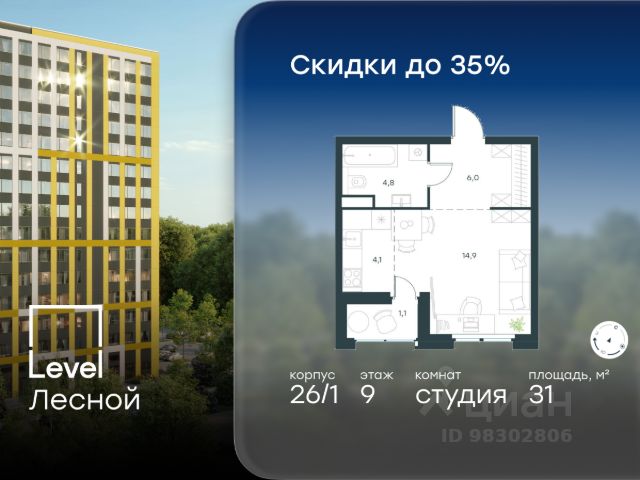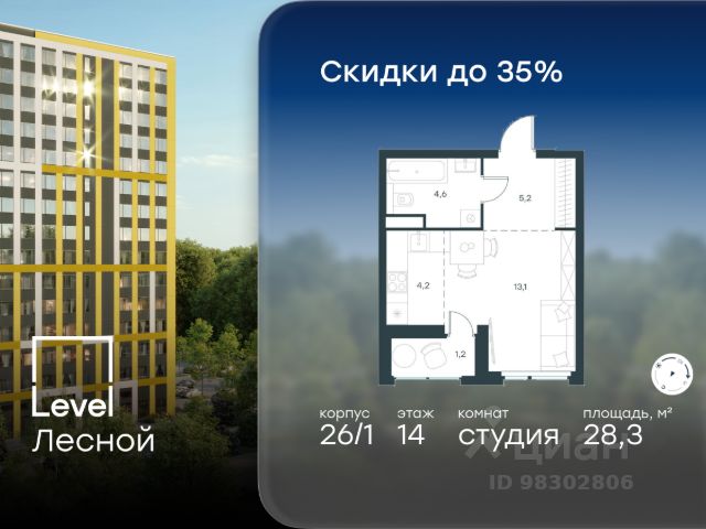 В районе, утопающем в густой зелени лесов, многочисленных парков и скверов, продаётся студия площадью 28.60 кв.м без отделки. Квартира расположена на 15 этаже в жилом комплексе комфорт-класса Level Лесной (компания Level Group/Левел групп).