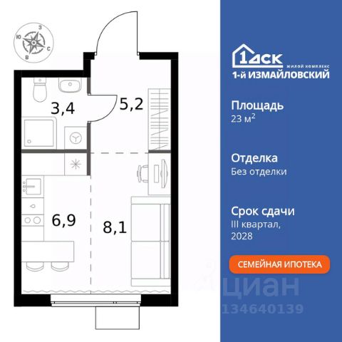 Прямая продажа от застройщика! Жилой Комплекс Комфорт класса. Продаётся квартира-студия номер 1136 общей площадью 23.6 кв.м. на 25-м этаже 25 этажного здания. Без отделки. Цена с учётом скидки. Особенности квартиры: - Организуем показ в удобное для вас время! - Линейная планировка - максимальная функциональность и удобство. - Место для игры/занятия спортом - идеальное пространство для активных детей. - Увеличенная высота потолков - ощущение простора и легкости. - Можно оборудовать рабочее место - комфорт для работы и учёбы. - Ниша под шкаф - компактное и удобное место для вещей. Квартира без отделки. Чистый холст для воплощения интерьера вашей мечты. Информация о комплексе: ЖК "1-й Измайловский" в восточной части Москвы: идеальное место для жизни в окружении 14 000 гектаров леса. Наслаждайтесь лыжными прогулками зимой и пробежками летом в сиреневом саду и лесопарках. Комплекс отгорожен от шоссе застройкой первой линии и садами здоровья. Из окон открываются виды на парк "Лосиный остров" и зеленые дворы. Близость к природе и спортивным объектам создаёт атмосферу здорового образа жизни. Транспортная доступность: Не более 2,5 км до станций метро "Щёлковская" и "Черкизовская" и МЦК "Локомотив". Щёлковское шоссе соединяет квартал с Северо-восточной хордой и МКАД, Центральным автовокзалом и Восточным железнодорожным вокзалом. Две автобусные остановки в паре минут ходьбы и 11 маршрутов общественного транспорта. На автомобиле 3 минуты до СВХ 12 минут до ТТК 15 минут до Садового кольца Внутренняя инфраструктура: ЖК расположен в историческом районе Москвы с развитой инфраструктурой. В шаговой доступности: 6 детских садов (включая собственный на 125 мест), 3 школы, поликлиники, торговые центры и парки. Проект создан для здорового образа жизни: рядом стадионы, спортивные объекты для футбола, баскетбола и конного спорта, а также более 30 км беговых и велодорожек. Всё для активной жизни в окружении зелени и современной инфраструктуры. Квартира без отделки - чистый холст для вашего интерьера.