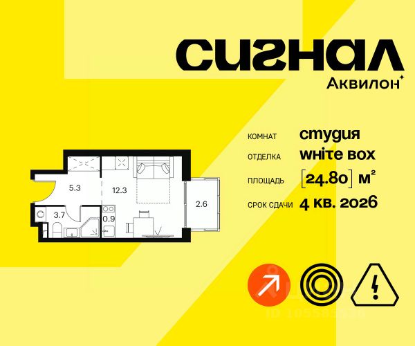 Продажа от застройщика. Продается уютная студия на 23 этаже 23-этажного современного апарт-комплекса Signal. Срок сдачи: 4 кв. 2026 г. Отделка: Апартаменты передаются в предчистовой отделке white box. Возможен заказ чистовой отделки. Мы выполним все инженерные и черновые отделочные работы, оставив вам самое приятное - создание индивидуального интерьера и неповторимого уюта. А если отпраздновать новоселье хочется как можно скорее, вы сможете заказать чистовую отделку в одном из двух цветовых вариантов: Beigestone или Greystone. Вам останется только завезти мебель и начать наслаждаться жизнью в SIGNAL. Расположение: ЖК Signal расположен на перекрестке столичных маршрутов. По Сигнальному проезду легко выехать на Алтуфьевское шоссе, СВХ и проспект Мира. Транспортная доступность: - 3 минуты пешком до станции Владыкино - 15 минут на автомобиле до ТТК - Ботанический сад в 10 минутах ходьбы Внутренняя инфраструктура Signal: - Фитнес-центр на первом этаже - Игровая площадка и приватном дворе - Коворкинг и уединенные зоны для работы - Торговая галерея Преимущества: - SoundStop - Система защиты от шума, дополнительная шумоизоляция - Система умного дома InHome 3.0 - управление домом нажатием нескольких кнопок - Система Termo-S, позволяющая сэкономить на оплате теплоснабжения - Фитнес-зал позовлит поддерживать себя в форме - Лаунж-зоны, где можно расслабиться - Лобби-бар с большим выбором напитков и закусок - Гостиничный сервис и консьерж reception 24/7 для решения бытовых задач - Апартаменты обслуживает профессиональная управляющая компания - Арт-объекты во дворах для стильного контента Signal - это дом, - чья молодость духа и бодрый настрой заряжают всех, независимо от возраста - который задает абициозную планку с самого начала карьеры - где живут интересные события и встречаются хорошие люди