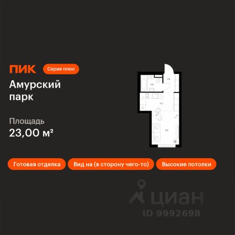 Продаётся квартира-студия площадью 19 кв.м на 27 этаже 27 этажного дома (Корпус 4.5, Секция 6) проекта ПИК Амурский парк. Светлый просторный подъезд на уровне земли, функциональная планировка, большие окна, c отделкой. "Амурский парк" — проект "Серии плюс" на востоке Москвы, в 10 минутах пешком от станций метро "Черкизовская" и МЦК "Локомотив". В квартале будет всё для комфортной жизни: квартиры с готовой отделкой и видом на Измайловский парк, уютные дизайнерские лобби, подземный паркинг, торговые галереи на первых этажах и свой детский сад с бассейном. Всего в 8 минутах пешком от квартала "Амурский парк" находится уютный Сиреневый сад, а в 20 минутах — Детский Черкизовский Парк, за 10 минут можно доехать на машине до парка "Лосиный Остров". Квартал от мастерской M.A.M. отражает уникальный архитектурный почерк и органично дополняет городской ландшафт. В основе концепции — принцип сомасштабности человеку, благодаря чему внутри проекта формируется комфортное и гармоничное пространство для жизни. Квартал представлен разновысотными корпусами в минималистичном стиле. Образ строится на сочетании мягких пластичных линий и строгих геометрических форм. Рельефные детали в виде вертикальных металлических ламелей добавляют зданиям объём и глубину, делая архитектуру более выразительной. Цветовая гамма фасадов построена на контрасте терракотового и молочно-серого оттенков, которые создают атмосферу тепла и уюта. Магазины, рестораны и полезные сервисы на первых этажах создадут комфортное пространство для покупок, прогулок и встреч за чашкой кофе. Артикул 1021323 (Застройщик АО "СПЕЦИАЛИЗИРОВАННЫЙ ЗАСТРОЙЩИК "ГЛОРИ"")