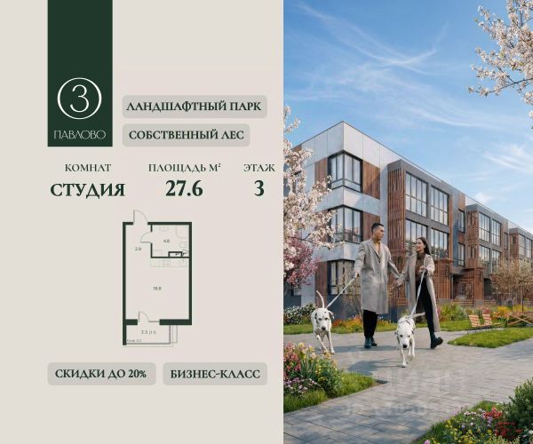 Продается студия 29.8 м² | ЖК "Павлово 3" | 3 этаж | Свободная планировка | Сдача проекта 2 кв. 2027 ЖК "Павлово 3" — Современный трёхэтажный клубный жилой комплекс бизнес-класса в Московской области, расположенный в районе кластера Большое Павлово на престижной Новой Риге, в 5 минутной доступности от ТРК "Павлово Подворье". В 19 минутах от МКАД, с развитой инфраструктурой и природными зонами рядом, собственным лесом в 10 гектар. Третий этаж — уровень крон деревьев, перед окнами раскидываются зеленые пейзажи, тишина и свежий воздух круглый год. Планировка и характеристики: • Окна: полупанорамные, во всю высоту • Состояние: без отделки • Планировка: свободная, с возможностью зонирования под ваш стиль жизни • Наличие балконов О проекте "Павлово 3" — это гармония городской эстетики и загородного уюта. Проект сочетает преимущества малоэтажной застройки, современного архитектурного решения и продуманной среды для комфортного проживания. В составе комплекса — трехэтажные дома, функциональные планировки, квартиры с террасами, панорамным остеклением и высокими потолками. Транспортная доступность Жилой комплекс расположен в 19 минутах от МКАД. До станции МЦД-2 Нахабино 5 минут на авто, до Садового кольца — 35 минут. Локация обеспечивает удобный доступ к ключевым транспортным маршрутам и позволяет совмещать загородный формат проживания с привычной городской мобильностью. Расположение и инфраструктура Проект реализуется на престижном направлении Новой Риги. В непосредственной близости расположены объекты повседневной и социальной инфраструктуры: магазины, кафе и рестораны, образовательные и медицинские учреждения, спортивные объекты, парковые и прогулочные зоны. На территории комплекса предусмотрен детский сад. Благоустройство Закрытая охраняемая территория, собственный лес, прогулочные маршруты, зоны отдыха, современные детские и спортивные площадки, а также зона барбекю. Благоустройство территории ориентировано на создание комфортной, безопасной и приватной среды для жизни. Архитектура Архитектурное решение от ведущих архитекторов с учетом экологичности и функциональности. Здания выполнены с дизайнерской интерьерной отделкой входных групп, благоустроенными дворами и прогулочными зонами. Архитектурная концепция комплекса: стиль high tech, вписанный в природу. Минимализм, связанный с природой. Городской уют квартиры перенесен на загородное пространство. Террасы, открытые уютные дворы, камерная трехэтажная застройка. Дерево уют и тепло. Природа открыта к человеку, выход из террас на природу. Начните новую главу жизни в гармонии с природой и городом! Цена указана при 100% оплате или стандартной ипотеке: подробности о проекте и условиях покупки можно уточнить в отделе продаж. Продам квартиру-студию в жилом комплексе с кухней гостиной в Московской области.