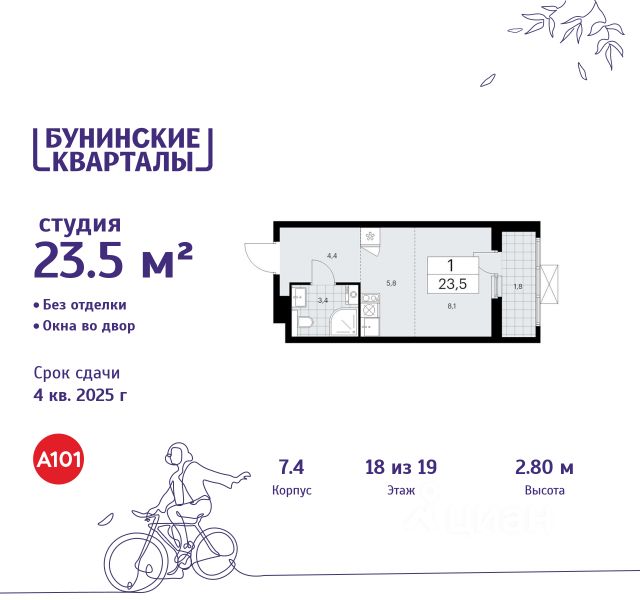 Продается студия 799 в новостройке ЖК "Бунинские кварталы" по адресу Москва, ТиНАО, Новомосковский АО, Сосенское С/П, жилой комплекс Бунинские Кварталы, к1.3, район Коммунарка, Новомосковский административный округ, Москва. Общая площадь квартиры - 28.50 кв. м., этаж 8 из 16, секция 12. Тип проекта, по которому построен дом - монолит, компания-застройщик - ООО "А101". Стоимость квартиры - 12439680 Р. ПРЕДЛОЖЕНИЯ ОТ ЗАСТРОЙЩИКА В ФЕВРАЛЕ 2026: Скидки до 10% на все квартиры. Только в офисах продаж до 28 февраля. Ипотека от 13,9 % для всех! На весь срок. "Семейная ипотека" вернулась. Ставка от 3,5 % на весь срок! Без удорожания! Выгодное ипотечное комбо: Ипотека от 2200 р./мес. и от 6 % после рождения ребёнка! Ипотека для всех "Держи пять!" - ставка 5 % на 2 года! *более подробную информацию по скидкам и акциям уточняйте в отделе продаж ЖК "Бунинские кварталы" строится на юго-западе Москвы. Монолитные дома в лаконичной стилистике гармонируют с живописной природой. Из любой точки района удобно добираться до природных объектов, ключевых транспортных узлов, крупных торговых, спортивных, деловых и медицинских центров. Концепция уникального благоустройства района - "Выходи гулять!". Здесь появятся эстрада для районных творческих мероприятий, спортивные и игровые площадки, скейт-парк, дружелюбные пространства для домашних питомцев, благоустроенная набережная Ивановского пруда. В районе формируется собственная развитая инфраструктура: современные школа на 1100 мест и 2 детских сада на 540 малышей, магазины у дома и сетевые супермаркеты, фитнес, кафе, салоны, детские развивающие центры. Крытый каток "Самолёт Арена" - в 10 минутах пешком. За 15 минут можно дойти до действующей станции метро "Потапово". Предусмотрены удобные автомобильные выезды на проспект Куприна и улицу Александры Монаховой. Особенности "Бунинских кварталов": - ст. метро "Потапово" - 15 минут пешком - своя школа и детские сады - безопасные дворы без машин с системой контроля доступа - насыщенная инфраструктура - в шаговой доступности и на первых этажах домов