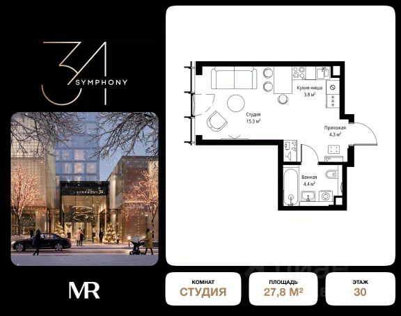 Дом сдан. Ключи в день покупки! В продаже студия площадью 27.10 м² с чистовой отделкой на 24 этаже 36 этажного дома в корпусе Сиена. ЖК Симфония 34 - концептуально новый жилой комплекс премиум-класса с подземной парковкой, состоит из четырех башен высотой 36 - 54 этажа. Квартиры сдаются с дизайнерской чистовой отделкой MR READY с встроенными кухнями и премиальной техникой. Приобретение квартиры с чистовой отделкой позволяет избежать лишних хлопот, ведь включает в себя установку мебели и бытовой техники на кухне, что является дополнительным бонусом. Высота потолков 3 - 6 метров, окна высотой до 2,6 м. Более 100 кладовых в подземной части ЖК и более 500 на этажах. Безопасность - Система контроля входа на территорию комплекса, биометрия - Система автоматического водяного пожаротушения и противопожарного водопровода, система пожарной вентиляции - Доступ на парковку при помощи системы распознавания автомобильных номеров, карточка для контроля доступа резидентов - Система видеонаблюдения - Круглосуточная связь через приложение, телефон, голосовые сообщения с охраной, консьержем, call-центр Расположение Пешком - 6 минут до метро "Дмитровская" - 15 минут до Тимирязевского парка На машине - 5 минут до Савеловского вокзала и Аэроэкспресса в Шереметьево - 10 минут до Москва-Сити и Садового кольца Благоустройство - 70% территории отведены под зеленые насаждения и ландшафтный дизайн - Приватный Японский сад - Детские площадки с зонированием по возрасту - Clubhouse для резидентов - Wellness & SPA - Зона для пикника, зона с гамаками - Центральное лобби, ресторан, коммерческие помещения - Дополнительный вход/выход на территорию комплекса Окружение - В 10 минутах от Symphony 34 находится дизайн-завод Flacon, где регулярно проходят культурно-образовательные и развлекательные мероприятия - Тимирязевский парк расположен в 850 м. Площадь парка 232 га - Рядом расположен парк "Дубки", площадью 16,5 га - В 15 минутах расположен Хлебозавод 9. Здесь находятся шоурумы брендов, кафе разных кухонь мира, образовательные проекты и площадки для мероприятийКомпания MR предлагает своим клиентам специальные условия приобретения квартир в рамках программ ипотечного кредитования от банков-партнеров.