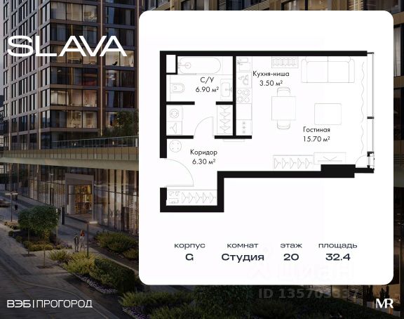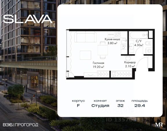 Квартиры премиум-класса в жилом комплексе SLAVA у м. "Белорусская" от застройщика. В продаже студия площадью 29 м² на 19-м этаже корпуса D. Новый современный жилой комплекс премиум-класса SLAVA расположен в той части центра, где традиция соединяется с прогрессивными городскими тенденциями. Здесь историческая Москва встречается с передовым миром. Популярные театры и старинные церкви соседствуют с современным деловым кварталом и гастрономическим кластером Депо. SLAVA находится всего в 5 мин. пешком от м. "Белорусская", по-новому открывая Ленинградский проспект. Проект был разработан легендарным архитектором Хельмутом Яном, основателем чикагского архитектурного бюро Jahn. Его работы отмечены множеством наград и реализованы в мегаполисах по всему миру. По замыслу архитекторов, жилой комплекс образуют четыре высотные башни, соединенные одноэтажным стилобатом "Хронограф". Здесь, на первом уровне, открытые и закрытые общественные пространства: небольшие сады, места для встреч и отдыха, кафе, рестораны, магазины, спортивный центр и даже выставочное пространство. Важнейшей особенностью пространства является его всесезонность: благодаря правильной организации, ландшафтному дизайну, инженерной инфраструктуре здесь будет уютно и в жару, и в xолод, и в ненастье. На втором уровне стилобата расположится приватный парк для жильцов. Особенности комплекса: - Идеальное расположение в престижной части Москвы (10 мин. от Кремля) - Панорамное остекление - Подземный паркинг с дизайнерской отделкой - Современные инженерные системы - Продуманная внутренняя инфраструктура - Приватный сад 7700 кв.м. Расположение комплекса: - 5 минут до станции метро "Белорусская" - 3 минуты до ТТК - 8 минут до "Садового кольца" Компания MR предлагает своим клиентам специальные условия приобретения квартир в рамках программ ипотечного кредитования от банков-партнеров. Продам квартиру-студию в ипотеку в новостройке рядом с метро Белорусская.