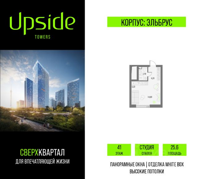 Продаётся студия площадью 33.39 кв.м на 3 этаже 19 этажного корпуса Олимп в квартале небоскребов "Upside Towers". В квартире отделка White-box, c видом на корпус Атлас, корпус Эльбрус, Гранд-плаза,. Номер квартиры В0301. Upside Towers - технологичный квартал строится в динамично развивающемся Бутырском районе, в 3 мин. от метро, в 5 мин. от ТТК. На территории 7 га возводится 5 высотных башен от 19 до 58 этажей, названных в честь главных вершин земли. Квартиры с панорамными окнами в пол, высокими потолками и современными инженерными решениями. Благоустроенная зеленая территория включает: приватные дворы, природный комплекс, прогулочный бульвар, ландшафтный парк 2,5 га с сенсорным садом и многофункциональными игровыми и спортивными площадками. В корпусе откроются магазины, кафе и рестораны, а также другие объекты коммерческой инфраструктуры. Большое внимание в проекте уделяется созданию социальной инфраструктуры. Между "Атласом" и "Олимпом" в трехэтажном стилобате разместится уникальное пространство закрытый клуб для жителей квартала Upside Club площадью 2 000 кв. м. Здесь разместятся: каминный зал с роялем, многофункциональная детская зона c двухуровневым игровым оборудованием для малышей и дошкольников, плей-рум для подростков, домашний кинотеатр, коворкинг, переговорные и лектории. На 47 этаже башни "Атлас" откроется SKY SPA Relax с расслабляющей атмосферой, джакузи, сауной, залами для релаксации и йоги. Собственники квартир смогут в любое удобное для них время забронировать посещение спа-зоны через смарт-приложение. На крыше стилобата разместится всесезонная BBQ патио-зона с верандой и закрытыми помещениями для приготовления и отдыха. В башнях откроются смотровые террасы для резидентов с панорамными видами на город, парки, Останкинскую башню, ВДНХ, Ботанический сад и Москву-Сити. Покупая квартиру даже самого минимального размера в Upside Towers, вы получаете в пользование 2 000 м² бесплатных общественных пространств. В рамках проекта строится государственная школа и детский сад, разместится более 15 000 кв.м. коммерческой инфраструктуры. Насыщенная социальная инфраструктура формирует множество сценариев для жизни на территории квартала. В Upside Towers применяются лучшие технологии и практики, чтобы обеспечить высшее качество жизни: Воздух, не уступающий по качеству горному, обеспечит приточно-вытяжная вентиляция. Пятиступенчатая очистка воды с сохранением полезных минералов. Центральное кондиционирование. Внутрипольные конвекторы с естественной конвекцией. Современные системы безопасности и мониторинга микроклимата. Высокоскоростной интернет на всей территории, в квартирах и паркинге за счет усиления GSM-связи всех ведущих операторов. Все места в подземном паркинге оборудованы зарядками для электрокаров. Бутырский район непрерывно развивается и готовится стать новым современным деловым районом Москвы. В рамках программы "Индустриальные кварталы" комплексного развития территории Огородного проезда будут построены современные обра