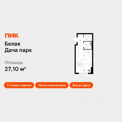 Продаётся квартира-студия площадью 23,4 кв.м на 5 этаже 25 этажного дома (Корпус 10, Секция 1) проекта ПИК Кузьминский лес. Светлый просторный подъезд на уровне земли, функциональная планировка, большие окна, c отделкой. Жилой квартал "Кузьминский лес" находится в Московской области, в городе Котельники. Отсюда за 18 минут можно дойти до метро "Котельники", а за 5 минут — доехать на машине до МКАД. В проекте — жилые дома с уютными дворами, школа, детский сад, подземные и гостевые паркинги. Вокруг — развитый район с детскими садами, школами и поликлиниками. Отдохнуть от городской жизни можно в Кузьминском парке и усадьбе "Белая Дача", которые совсем недалеко от "Кузьминского леса". Артикул 583057 (Застройщик АО "Компания АТОЛ")