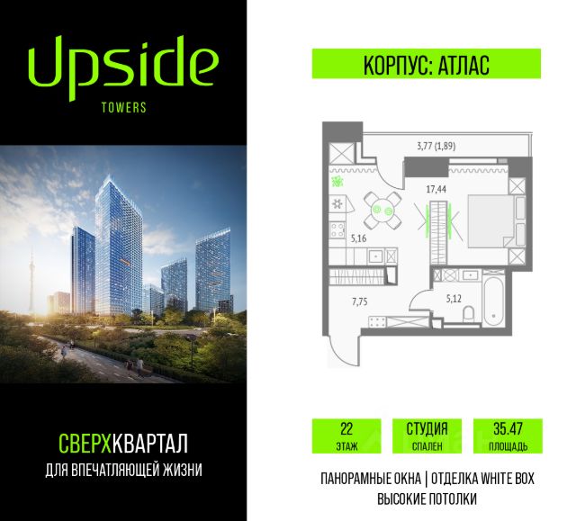 Указанная акционная стоимость доступна при 100% оплате или ипотеке без субсидирования. Цена действует до 31.12.2025 23:59:00. Стоимость без акции 25397592. Продается 1-комнатная квартира от застройщика в ЖК премиум-класса TATE на 47 этаже. Общая площадь 33,35 м². Отделка предчистовая (white box). 1 санузел. Вид из окна на Тимирязевский парк. Башня A. Срок сдачи: 2 кв. 2027 Выдача ключей: 4 кв. 2027 Проект расположен на границе с ЦАО в районе Марьина Роща на улице Веткина. В шаговой доступности находится метро Марьина роща (5 минут), парки "Останкино" и "Сокольники" (15 минут). До центра столицы время в пути составит 15 минут на авто. На территории премиум квартала откроют спа- и фитнес-центр, бассейн, оборудуют детские и спортивные площадки. Предусмотрен подземный двухуровневый паркинг с контролем доступа и лифтом на жилые этажи. Паркинг рассчитан на 568 машино-мест. Доступ в жилой комплекс осуществляется по биометрическому контролю - Face ID. Территория закрытая с видеонаблюдением и консьерж-сервисом 24/7. Особенности ЖК: - 2 башни высотой от 41 до 49 этажей. - Исторический район; - Панорамная лаундж-зона на высоте 140 м; - На 4041 этажах видовые пентхаусы площадью до 200 м²; - Два вида отделки: лаконичный и монохромный WhiteBox или готовые интерьеры с безупречным чувством меры - Лобби с потолками высотой почти 6 м; - В отдельном 6-этажном здании на территории будут: просторный фитнес-центр с бассейном, концептуальный ресторан, офисные пространства; - Детские зоны и спортивные площадки; - 6 скоростных лифтов; - Лапомойки для животных; - Безбарьерная среда. Купить квартиру-студию в ипотеку в новостройке рядом с метро Марьина роща.
