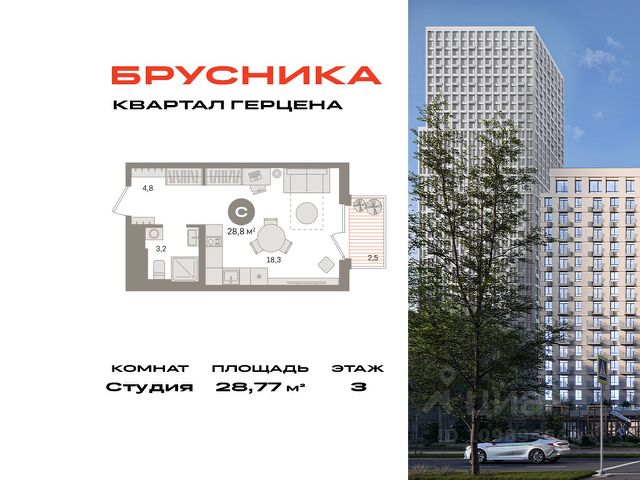 Студия в квартале Герцена. Особенности планировки: предчистовая отделка. Квартиру можно купить онлайн. В квартире выполнена отделка "под чистовую". Установлены окна с двойным стеклопакетом, радиаторы с терморегуляторами. На полу цементно-песчаная стяжка. В квартиры заведены кабели для интернета и ТВ. Входная сейф-дверь не требует замены. Организован поквартирный учёт энергоресурсов (водоснабжение, отопление, электричество). Квартал "Герцена" расположен в Бирюлёве Восточном — районе на юге Москвы. Дорога до ТТК займет всего полчаса на автомобиле, до станции метро и ж/д станции "Царицыно" — 13 минут, а до автовокзала "Южные ворота" — 20 минут. До автобусных остановок можно дойти пешком. В 2027-2028 году откроется новая станция метро "Лебедянская", дорога до неё займет всего 18 минут. Общая площадь "Квартала Герцена" составляет 27,3 га. Дома состоят из разноуровневых секций высотой от 6 до 55 этажей с видовыми террасами и балконами. На территории квартала будет построена поликлиника, детский сад на 350 мест и воспитательно-образовательный комплекс на 1075 мест, а также рестораны, клиники, магазины и салоны красоты. Объявление от застройщика. Ипотека, материнский капитал. Обмен — один из способов покупки. Обмен подойдёт, если вы хотите быстро поменять старую квартиру на новую. Получить ипотеку или рассрочку, а также обменять квартиру можно онлайн. Запишитесь на онлайн-презентацию по телефону или на сайте. квартиры в нашей базе: ГРЦ01.2-Ж2.20.11.