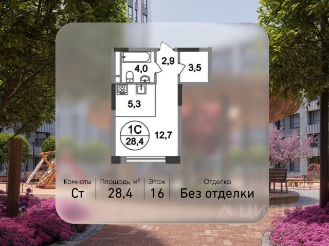 Открытие продаж готовых квартир! Продается квартира-студия без отделки в городе-парке "Переделкино Ближнее". Общая площадь квартиры - 28,4 кв. м, этаж 16 из 17. Тип дома - монолитный. Дом сдан! ТОЛЬКО ДО 31 МАРТА выгодные условия на приобретение квартиры в ипотеку или рассрочку. Звоните - и мы подберем оптимальное предложение под ваш запрос! Корпус 1 состоит из 6 секций. Город-парк "Переделкино Ближнее" расположен в 8 км по Боровскому шоссе от МКАД на территории Новой Москвы. ТРАНСПОРТНАЯ ДОСТУПНОСТЬ: - в пешей доступности находятся метро "Рассказовка" и МЦД-4 "Мичуринец" - 14 минут на машине до станции метро "Филатов Луг" Сокольнической линии - 15 минут на машине до станции метро "Саларьево" Сокольнической линии - 35 минут на метро до центра Москвы ПРЕИМУЩЕСТВА 1 КОРПУСА: - квартиры у леса - высота потолков - от 3 метров - входные группы с безбарьерным доступом - в каждой секции - 2 лифта: 1 пассажирский, 1 грузовой - колясочные на 1 этаже - коммерческие помещения на 1 этаже - на -1 этаже - кладовые помещения - огороженный двор без машин - обеспеченность машино-местами: гостевой и многоуровневый паркинги рядом с домом - 5-10 минут пешком до школы и детского сада 17 фаза строительства уникальна своим расположением - рядом с Ульяновским лесопарком, парком "Рассказовка" и Большим Федосьинским прудом. ВНУТРЕННЕЕ БЛАГОУСТРОЙСТВО: В рамках 17 фазы для жителей предусмотрено создание пространства свободного от машин - благоустроенные огороженные дворы с современными детскими и спортивными площадками, разделенными на зоны по возрастам. РАЗВИТАЯ ИНФРАСТРУКТУРА В ОКРУЖЕНИИ: - открыты 2 школы на 3750 мест и строится 1 школа на 2100 мест - детский сад 1788 (всего в проекте 7 детских садов) - торговый центр "Сказка" - кафе, продуктовые магазины, аптеки, фитнес-центры, салоны красоты и пр. - в пешей доступности расположен благоустроенный парк "Рассказовка"