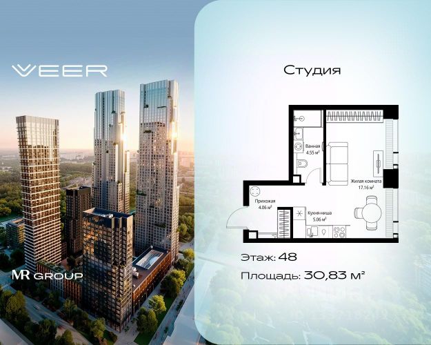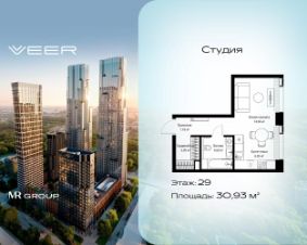 Старт продаж новой очереди! Продаётся студия общей площадью 31.64 м² без отделки в ЖК VEER на 35-м этаже 70 этажного дома. VEER.2 — вторая очередь футуристичного квартала бизнес-класса VEER. Это новая экосистема в престижном Западном округе Москвы, поражающая масштабностью внутренней инфраструктуры. ЖК находится всего в 5 минутах от Кутузовского проспекта и в 15 минутах от Сколково. Ансамбль из четырех стеклянных башен с доминантой в 237 метров разработан по принципу современного урбанизма и выражен в лаконичных объемах — параллелепипедах со сглаженными углами, которые придают зданиям утонченный вид. Расположение и транспортная доступность: • Образовательный комплекс в составе топовой школы, состоящий из двух зданий: основное на 1500 школьных и 450 дошкольных мест, отдельное здание детского сада на 300 мест. • Парк "Долина реки Сетунь" площадью более 700 гектаров • Рядом МГУ, МГИМО, РАНХиГС и Академия ФСБ • 15 минут по Кутузовскому проспекту до ужина в центре с видом на Москву-реку • 18 минут пешком до м. "Давыдково" • Открытие новых станций метро в шаговой доступности в будущем Инфраструктура: Двор в VEER.2 — это ассиметричные холмы, каменные "лабиринты", зеленые ковры и хвойные островки с единой живой экосистемой. Здесь есть все: • Павильон умиротворения Место отдыха под навесом в спокойной части двора, окруженное деревьями. • Активная тропа Тактильная дорога из камней разного диаметра для расслабляющих прогулок. • Бизнес-гарден Оборудованное пространство для работы на свежем воздухе со столом и встроенными розетками. • Детская площадка Двухуровневая площадка "Ботаника" с песочницей, переговорной трубой и горкой "Дружба". Компания MR предлагает своим клиентам специальные условия приобретения квартир в рамках программ ипотечного кредитования от банков-партнеров.