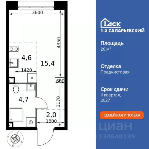 ТОЛЬКО 4 ДНЯ ДО 10.02 • Дополнительная скидка 10% • Ставка 10% по стандартной ипотеке для всех без наценок • Ставка 3,5% по семейной ипотеке Успейте купить выгодно! Прямая продажа от застройщика! Жилой Комплекс класса Комфорт+. Продаётся квартира-студия номер 2 общей площадью 30.7 кв.м. на 2-м этаже 25 этажного здания. Без отделки. Цена с учётом скидки. Особенности квартиры: - Линейная планировка - максимальная функциональность и удобство. - Увеличенное количество окон - дополнительное освещение и свежий воздух. - Гибкая планировка - создайте пространство по своему вкусу. - Можно оборудовать рабочее место - комфорт для работы и учёбы. - Линейная кухня - функциональность и практичность в одном решении. - Лоджия - уютное место для отдыха и тишины. - Просторная лоджия - идеальное место для уютных вечеров. Информация о комплексе: Весь микрорайон спроектирован в концепции "без машин". Пейзаж не портят припаркованные автомобили, а родители могут не опасаться за перемещение детей по всему кварталу. Территория комплекса - царство пешеходов. А что делать, если Вы или Вам подвезли чтото габаритное? Проблему решают сквозные подъезды, открывающие доступ в здание с внешней стороны комплекса. Проезд к домам организован по внешнему контуру микрорайона. Места для автомобилей отведены на 7 этажах наземного паркинга и в подземном паркинге 6-го корпуса. За порядком и безопасностью зорко следит множество камер. Безбарьерная среда облегчает передвижение по территории молодых родителей с колясками, маленьких детей и жильцов с ограниченными возможностями. Транспортная доступность: "1-й Саларьевский" расположен в Новой Москве всего в 2 км от МКАД и 5 минутах ходьбы от метро Саларьево. Если Вы за рулем, для Вас удобный выезд на скоростное Киевское шоссе. Передвигаетесь не на автомобиле? Станция метро Саларьево и автовокзал в пешей доступности. У метро находится один из крупнейших ТЦ Новой Москвы "Саларис". Это значит, что всевозможные покупки и разнообразные развлечения для всей семьи тоже рядом. Личный автотранспорт: До Киевского шоссе - 0,2 км До МКАД - 2,4 км До Калужского шоссе - 5 км До Ленинского проспекта - 3,2 км Общественный транспорт: До станции метро "Саларьево" - 7 мин пешком До остановок наземного транспорта - 5-10 мин пешком До Ленинского проспекта на автобусе - 10 мин Внутренняя инфраструктура: Во дворе царит атмосфера легкого беззаботного настроения. По сторонам расположились любимые местными жителями магазинчики, где можно купить товары первой необходимости, кафе, где приятно посидеть с друзьями, и кофе-пойнты. На бульваре можно посмотреть уличную выставку, поиграть с соседями в шахматы и покачаться на световых качелях. Дети растут быстро, и вот уже возникает вопрос садика. На территории есть свой современный садик на 225 мест. Из садика ребенок плавно переходит в свою же муниципальную школу, рассчитанную на 450 мест. Построенная по индивидуальному проекту, она соответствует эстетической и дружелю