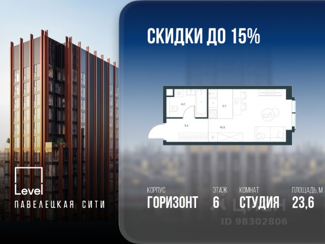 В Даниловском районе столицы (ЮАО) продаётся студия площадью 27.00 кв.м без отделки. Квартира расположена на 6 этаже 27-этажного корпуса 'Горизонт' в жилом комплексе бизнес-класса Павелецкая Сити. Высота потолков 3.00м. Престижная локация "Павелецкая Сити" - жилой комплекс бизнес-класса, расположенный в престижном Даниловском районе Москвы, на границе с ЦАО. Проект находится в историческом центре города в окружении парков, Москвы-реки и сформированной инфраструктуры. В пределах 20 минут пешком есть 3 станции метро, а в 5 минутах езды на авто - ТТК и Садовое кольцо. - 15 мин. пешком до метро "Павелецкая"; - 20 мин. пешком до станций "Тульская" и "Серпуховская"; - 8 мин. на авто до Кремля; - 10 мин. на авто до парка Горького и парка "Зарядье"; - 20 мин. на авто до башен "Москва-Сити". Авторская архитектура Архитектурная концепция разработана бюро СПИЧ по индивидуальному проекту. Облик корпусов I и II очередей отсылает к стилистике архитектуры классического Нью-Йорка и золотой эпохи Голливуда. Корпуса IV очереди вдохновлён эстетикой ар-деко в её современном переосмыслении. Благодаря линейному расположению корпусов из большинства квартир будут открываться потрясающие виды на исторический центр города и Москву-реку. Дизайнерские лобби Изысканные интерьеры лобби жилого комплекса отсылают к классическим фильмам золотой эпохи Голливуда. Классика в "Павелецкая Сити" - не имитация, а современное осмысление лучшего в этом стиле. В каждом вестибюле оборудованы стойки ресепшен, комфортные зоны ожидания, гостевые санузлы, мойки для лап животных, колясочные. В корпусах по 3-4 лифта, включая сервисный, с прямым доступом в паркинг. Площадь лобби - от 47,9 до 114,9 кв. м, высота потолков - до 5,46 м. Благоустройство и инфраструктура Для создания благоустройства было приглашено 2 ведущих бюро - ADM и GAFA. Разноуровневое пространство вмещает всё необходимое для качественного досуга: игровые площадки для детей всех возрастов, тропы здоровья для пеших прогулок, крытые аллеи с качелями, места для работы на свежем воздухе, многофункциональные спортивные площадки - воркаут-зоны, столы для пинг-понга, зоны командных игр. Общая площадь закрытого двора - 4,63 га. Комфорт - это когда рядом всё, что нужно для жизни. На первых этажах и в стилобатной части корпусов "Павелецкая Сити" размещены 85 коммерческих помещений, где откроются супермаркеты, кафе, пекарни, аптеки и другие службы сервиса. В составе проекта также предусмотрены собственный фитнес-клуб и развивающий центр Letovo Kids, а также школа на 720 мест и детский сад на 175 мест. Технологии и безопасность - Wi-Fi в лобби и на придомовой территории; - Автоматизированная система контроля и учета ресурсов; - Круглосуточное видеонаблюдение и охрана; - Круглосуточная связь с охраной через приложение, телефон или кол-центр; - Контроль доступа по биометрической системе Face-ID; - Усиленный сотовый сигнал в лифтах и паркинге; - Распознавание номеров автомобилей при въезде/выезде в/из паркинга. Квартира-студия в ипотеку в новостройке рядом с метро Тульская.