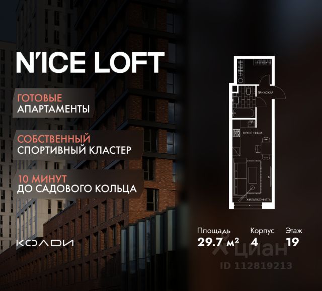 N'ICE LOFT — готовый комплекс апартаментов с собственным спортивным кластером в 10 минутах от Садового кольца. Комплекс апартаментов бизнес-класса N'ICE LOFT, девелопером которого выступила компания КОЛДИ, представляет собой знаковое жилое пространство, на территории которого органично объединены высококачественная инфраструктура для комфортной жизни и полноценный спортивный кластер. N'ICE LOFT — новая спортивная доминанта Москвы, где для жителей и их гостей предусмотрено более 20 000 м², созданных специально для тренировок, игр, восстановления и оздоровления. Автором выразительной городской эстетики выступило архитектурное бюро APEX. Строгие силуэты фасадов эффектно возвышаются над благоустроенным окружением, а световые блики элегантно подчеркивают структурное фасадное остекление. Сердце проекта — физкультурно-оздоровительный комплекс с двумя ледовыми аренами формата НХЛ — профессиональными площадками. Помимо спортивных арен на территории N'ICE LOFT предусмотрено пять многофункциональных залов, где каждый сможет реализовать свой спортивный потенциал. Для тех, кто предпочитает тренировки и прогулки на свежем воздухе, создан спортивный парк общей площадью 6 300 м² с воркаут-зонами, игровыми площадками и уединенными пространствами для отдыха. Также внутри квартала проложена километровая беговая дорожка, которая доступна к использованию в любое время года. Особое внимание архитекторы уделили входной группе — просторное авторское лобби с потолками до 9 метров с использованием природных элементов. Резиденты и их гости смогут насладиться садом, не покидая пределы дома. Территория апарт-комплекса N'ICE LOFT соответствует современным стандартам безопасности: инновационная система видеонаблюдения, охраняемый подземный паркинг и круглосуточный консьерж-сервис. Преимущества N'ICE LOFT: Готовый комплекс с собственным спортивным кластером в 10 минутах от Садового кольца Современная архитектура с выразительными контрастными фасадами Спортивная инфраструктура 20 000 м²: 2 ледовые арены формата НХЛ, 5 многофункциональных залов, беговая дорожка 1 км Спортивный парк 6 300 м² с зонами для разных видов активностей Более 10 видов спорта в одном кластере Апартаменты с панорамными окнами и потолками до 5 метров Видовые лоты с террасами и патио Авторское лобби с потолками до 9 метров Консьерж-сервис 24/7 Охраняемый подземный паркинг