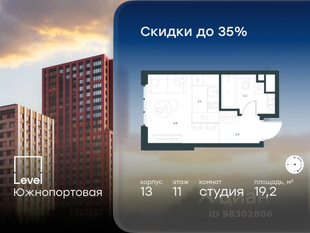 В северной части района Печатники продается студия-апартамент площадью 19.20 кв.м без отделки. Апартаменты расположены на 11 этаже 23-этажного корпуса 13 в жилом комплексе комфорт-класса Level Южнопортовая (компания Level Group/Левел групп). Отличная транспортная доступность: - 10 мин. пешком до станции метро "Кожуховская"; - 20 мин. пешком до станции МЦК "Дубровка"; - 3 мин. на авто до ТТК; - 13 мин. на авто до Садового кольца; - 15 мин. на авто до Бульварного кольца. Продуманный архитектурный проект: - авторская архитектура от бюро СПИЧ; - уникальные виды на реку, парки и достопримечательности города; - высота потолков в квартирах до 6 м; - окна высотой до 1,87 м с высоким коэффициентом сопротивления теплоотдаче. Расположение: Level Южнопортовая строится в северной части района Печатники - самой приближенной к центру. Здесь будет сформирован новый район "Южный порт", где построят крупный жилой и общественно-деловой центр, аналогичный Москва-Сити. В течение 10-12 лет в этом месте появятся не только жилые дома, но и развитая инфраструктура для жизни и работы. А еще совсем рядом находится набережная Москвы-реки, где планируется построить причалы для речных трамвайчиков и канатную дорогу. Уже сейчас вокруг жилого комплекса работают десятки магазинов и торговых центров, рядом расположено 6 парков, среди которых музей-заповедник "Коломенское". В 10 минутах пешком - 2 муниципальных и 2 частных детских сада, 7 общеобразовательных школ. Внутренняя инфраструктура: Для отдыха жителей в каждом корпусе предусмотрено лобби, оснащенное местами для отдыха, гостевыми санузлами и лапомойками, а в отдельных корпусах - камином. За счёт больших окон и высоких потолков пространства будут наполнены воздухом и светом. На первых этажах жилого комплекса откроются магазины, салоны красоты, фитнес-центр. Для детей строятся собственные детский сад и школа. Благоустройство: Внутренний двор комплекса разработан совместно с бюро GAFA. Основная идея - создать аналог Центрального парка в Нью-Йорке, гармонично сочетая высотные здания и большое изолированное парковое пространство. Вся площадь двора-парка будет огорожена и составит более 2 га, из которых 45% - озеленение. Одним из самых важных ландшафтных элементов здесь станет небольшая речка, наполняющаяся во время дождя. Вокруг неё появится сеть из островов, внутри которых расположатся тематические зоны спорта и отдыха. Технологии и инженерия: - автоматическая передача в управляющую компанию показаний квартирных счётчиков; - телефонная связь, телевидение и интернет на базе оптической мультисервисной сети; - гостевой Wi-Fi в лобби и на территории двора; - единый ключ доступа для входа на территорию комплекса.