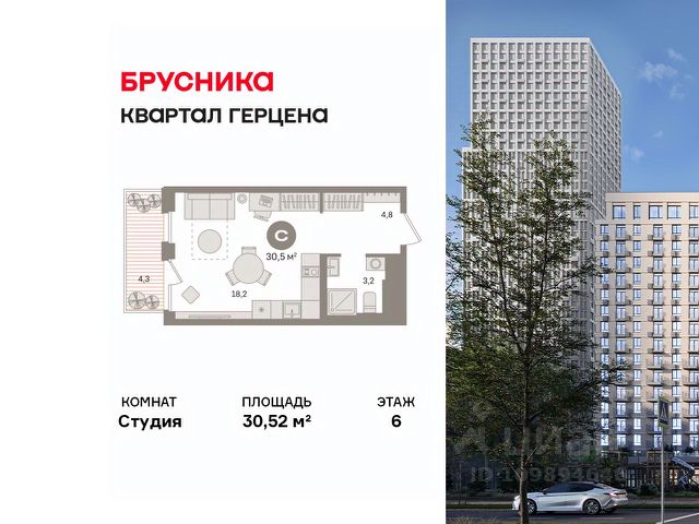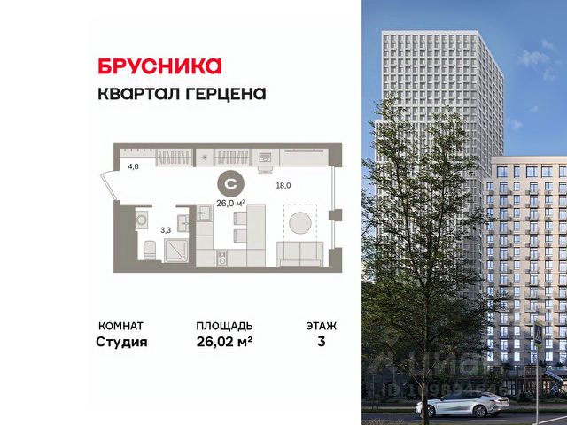 Студия в Квартале Герцена. Особенности планировки: предчистовая отделка. Квартиру можно купить онлайн. В квартире выполнена отделка "под чистовую". Установлены окна с двойным стеклопакетом, радиаторы с терморегуляторами. На полу цементно-песчаная стяжка. В квартиры заведены кабели для интернета и ТВ. Входная сейф-дверь не требует замены. Организован поквартирный учёт энергоресурсов (водоснабжение, отопление, электричество). Квартал "Герцена" расположен в Бирюлёве Восточном — районе на юге Москвы. Дорога до ТТК займет всего полчаса на автомобиле, до станции метро и ж/д станции "Царицыно" — 13 минут, а до автовокзала "Южные ворота" — 20 минут. До автобусных остановок можно дойти пешком. В 2027-2028 году откроется новая станция метро "Лебедянская", дорога до неё займет всего 18 минут. Общая площадь "Квартала Герцена" составляет 27,3 га. Дома состоят из разноуровневых секций высотой от 6 до 55 этажей с видовыми террасами и балконами. На территории квартала будет построена поликлиника, детский сад на 350 мест и воспитательно-образовательный комплекс на 1075 мест, а также рестораны, клиники, магазины и салоны красоты. Объявление от застройщика. Ипотека, материнский капитал. Обмен — один из способов покупки. Обмен подойдёт, если вы хотите быстро поменять старую квартиру на новую. Получить ипотеку или рассрочку, а также обменять квартиру можно онлайн. Запишитесь на онлайн-презентацию по телефону или на сайте. квартиры в нашей базе: ГРЦ01.1-Ж3.4.2.