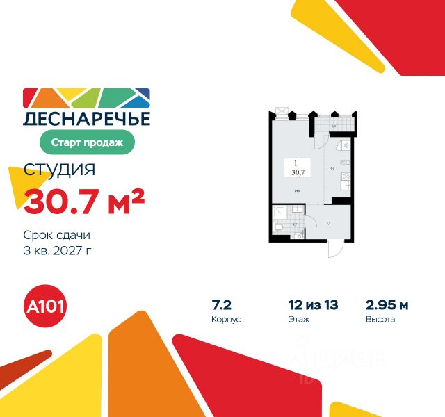 Продается студия, с отделкой в ЖК "Новые Ватутинки. Квартал у реки". Общая площадь: 26.8 кв.м., жилая: 8.7 кв.м., площадь кухни: 7.2 кв.м. Этаж: 1. Район расположен всего в 14 километрах от МКАД по Калужскому шоссе, в центральной части Новой Москвы. Добраться сюда можно на автобусах и маршрутках от станций метро "Ольховая", "Теплый Стан" и "Бульвар Адмирала Ушакова". Время в пути от "Теплого Стана" и "Ольховой" занимает в среднем до 20 минут, даже в часы пик. В 2025 году рядом начнется строительство новой станции метро "Десна" (Троицкая линия), которая будет находиться в пешей доступности. Благодаря удачному расположению и развитой инфраструктуре Новые Ватутинки становятся одним из культурных и образовательных центров Новой Москвы. Строительство нового микрорайона началось с трех жилых корпусов, оснащенных подземными паркингами, индивидуальными кладовыми и коммерческими помещениями на первых этажах. Заречный имеет два удобных выезда на Калужское шоссе, что обеспечивает свободный проезд без заторов. В будущем жители также смогут пользоваться станцией метро "Десна", выбрав общественный транспорт. В районе предусмотрено строительство двух образовательных комплексов с детскими садами и школами, поликлиники и торгового центра Сквозь весь микрорайон — от будущей станции метро до набережной и парка "Андерсен" — протянется пешеходный бульвар длиной 1,5 км с уютными скверами, мини-площадями и садами. Архитектурная концепция предусматривает постепенное снижение этажности ближе к бульвару, создавая приятную для жизни и прогулок городскую среду. Принцип "город в гармонии с природой" реализован через дворы без машин и безбарьерное пространство на всей территории. Внутренние дворы будут предназначены для тихого отдыха и детских игр, а активные зоны разместятся на крупных плейхабах и в общественных пространствах. "Андерсен" станет центром активного досуга: здесь запланированы вело- и пешеходные маршруты, спортивные площадки, зоны для индивидуальных тренировок на свежем воздухе, а также места для рыбалки, сапбординга и тюбинга. Квартирный фонд отличается разнообразием планировок и продуманной эргономикой: просторные квартиры, большие лоджии, по две ванные комнаты. Свободные планировки позволят легко зонировать пространство под личные нужды — создать уютную спальню, рабочее место или гостиную. В цокольном этаже предусмотрены кладовые для хранения сезонных и крупных вещей, а также подземный паркинг с индивидуальными и семейными машино-местами. Спуститься к автомобилю можно прямо из квартиры — на лифте. Проект включает систему видеодомофонии: жители смогут получать уведомления о визитах гостей в режиме онлайн, открывать входную дверь удалённо, сохранять снимки с панели вызова, а также при желании — подключить наблюдение за камерами в лифтах через мобильное приложение. Выдача ключей в 2027г. Продается квартира-студия в новостройке в поселении Десёновское в Москве.