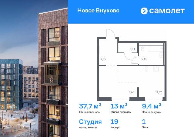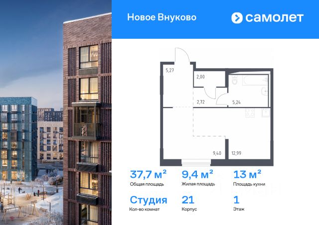 Строим кварталы для жизни с заботой о будущем. Предлагается квартира студия комфорт-класса 22,58 кв.м в корпусе 32 на 5 этаже, в ЖК "Новое Внуково" Квартира без отделки. Доступность опции "отделка" и возможность комплектации мебелью и декором уточняйте у застройщика. Приобрести квартиру возможно по специальным акциям от застройщика, с текущими условиями акций можно ознакомиться в блоке "Акций". Цена динамическая и может отличаться, уточняйте актуальность у застройщика. "Новое Внуково" — это жилой комплекс в Новой Москве, у подножия берега реки Незнайка. Поблизости — живописные места для прогулок: народный парк "Ручеек", усадьба Старо-Никольское, Валуевский и Ульяновский лесопарки. Часть домов сдана и внутри района уже открыт детсад с бассейном, а в ближайшее время откроются еще 3 детсада, 2 школы и поликлиника. На территории проекта будет построен первый в России Центр Российской Федерации Баскетбола, где будут площадки с трибунами, тренажерный зал, кафе и конференц-зал. Дворы-парки закрыты от машин и посторонних. На территории — прогулочный маршрут вдоль реки Незнайка и набережная с шезлонгами и качелями для отдыха. Также здесь появится плейхаб "Незнайка на Луне", площадь для мероприятий с сухим фонтаном, летним кинотеатром и кафе. В жилом комплексе — монолитные дома высотой от 6 до 14 этажей. Фасады облицованы кирпичом природных оттенков.