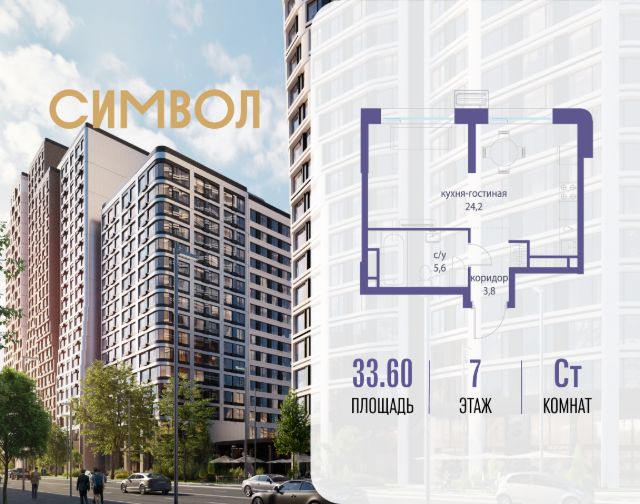 Скидка до 12% действует до 25.12.2025 г. при 100% оплате и не субсидированной ипотеке. Продается квартира-студия от застройщика: общая площадь 30.80 м², жилая 11.50 м², кухня 10.00 м², 4-й этаж, жилой квартал "Вдохновение", корпус 32 (секция 1). Срок сдачи: 4 квартал 2027 года. Позвоните сейчас и забронируйте квартиру! Квартал бизнес-класса СИМВОЛ - это городское пространство нового поколения в историческом районе Лефортово, на границе ЦАО, в 2 км от Садового кольца. Бионическая архитектура СИМВОЛА превратила Лефортово в суперсовременное и модное пространство. Из окон, с балконов и террас просторных квартир СИМВОЛА открываются отличные виды на город и новый парк "Зеленая река", "протекающий" через все кварталы комплекса на 2 км. В квартале уже есть все, что нужно для комфортной жизни: кафе и рестораны, супермаркеты и магазины, медицинские и физкультурно-оздоровительные центры, салоны красоты и барбершопы, аптеки и оптики, химчистки, пункты доставки и другие сервисы - всего более 90 действующих объектов внутриквартальной инфраструктуры. Для юных жителей СИМВОЛА открыты детский сад и инженерный лицей при МГТУ им. Баумана. Особенности квартала: • Свой парк "Зеленая Река" - 10 га зелени и развлечений на любой вкус! • Уникальная для Москвы архитектура - Проект создан архитектурной мастерской ATRIUM по дизайн-коду британских бюро LDA Design и UHA London. • Богатая инфраструктура с детскими садами и лицеем им. Баумана, кафе и ресторанами, супермаркетами и аптеками, зоной для фитнеса, бассейном и мед. центром. • Квартиры с панорамными окнами, террасами, ванными с окнами и каминами редких форматов. • Закрытые безопасные зелёные дворы-парки без машин! Квартира-студия в новостройке в районе Лефортово в Москве.