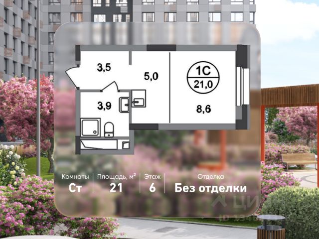 Продается квартира-студия без отделки в 7 фазе города-парка "Первый Московский". Общая площадь квартиры - 21 кв. м, этаж 6 из 20. Срок сдачи - 1 квартал 2027 года. Тип дома - монолитный. ТОЛЬКО ДО 30 АПРЕЛЯ выгодные условия на приобретение квартиры в ипотеку или рассрочку. Звоните - и мы подберем оптимальное предложение под ваш запрос! Корпус состоит из 3 секций. Город-парк "Первый Московский" расположен всего в 7 км по Киевскому шоссе от МКАД на территории Новой Москвы. Из города-парка прямой выезд на Киевское шоссе и трассу Солнцево-Бутово-Варшавское шоссе. ТРАНСПОРТНАЯ ДОСТУПНОСТЬ: - 5 мин. на личном автомобиле или 10 мин. на автобусе 189 и 147 до станции метро "Филатов Луг" - 25 мин. пешком до станции метро "Филатов Луг" ИНФРАСТРУКТУРА: Около 7 фазы запланировано строительство детского сада, школы, 2 многоуровневых паркингов. Также на территории проекта есть все необходимые объекты действующей социальной и бытовой инфраструктуры: 8 детских садов, 5 школ, ТЦ, магазины, паркинги, аптеки и др. БЛАГОУСТРОЙСТВО: - Дворы без машин - Игровые зоны для детей, зоны для занятия спортом, зоны для отдыха с навесами/качелями - Детские площадки разделены по возрастным группам - Пешеходный и веломаршрут с двухполосной велодорожкой 2,5 м в ширину - Озеленение с растениями всесезонного цветения ОСОБЕННОСТИ АРХИТЕКТУРЫ: В каждой секции 3 корпуса предусмотрены: - колясочные во входных группах - кладовые помещения с -1 по 20 этажи - коммерческие помещения на 1 этажах - по 4 лифта: 2 пассажирских, 2 грузовых - видеонаблюдение, установленное в холлах первых этажей, у подъездов и на прилегающей территории АВТОРСКИЙ ДИЗАЙН: Входные группы выполнены по авторскому дизайну, оснащены системой "тёплый пол". В каждой входной группе будет располагаться комфортабельная зона ожидания с мягким диваном, акцентными пуфами и столиком.