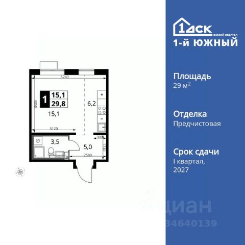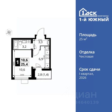 Прямая продажа от застройщика! Жилой Комплекс класса Комфорт Плюс. Продаётся квартира-студия номер 494 общей площадью 25.4 кв.м. на 24-м этаже 24 этажного здания. Чистовая отделка. Цена с учётом скидки. Особенности квартиры: - МЦД-5 в пешей доступности - Квартал с южным садом - Свои 3 детских сада и 2 большие школы - Линейная планировка - максимальная функциональность и удобство. - Увеличенная высота потолков - ощущение простора и легкости. - Просторная мягкая зона - комфорт и уют для отдыха всей семьи. - Возможность добавить спальное место - дополнительный комфорт для гостей. - Ниша под шкаф - компактное и удобное место для вещей. - Лоджия - уютное место для отдыха и тишины. Информация о комплексе: Одно из преимуществ проектов 1- ДСК большие застекленные лоджии. Другое преимущество честный евро-формат. Во всем проекте предусмотрена система Умный дом. В состав устанавливаемого пакета устройств входит: WiFi реле для управления группами потребителей, беспроводной кран перекрытия с эл. приводом, беспроводной сенсор протечки, Яндекс Станция Мини. Его расположение можно назвать удачным за счет транспортной доступности и близости к природным объектам. По соседству лес, а в каждом дворе плодовые деревья. Весной квартал окутывает бело-розовое облако: это цветут яблони, груши, сливы. К августу в воздух наполняется ароматом созревших плодов. Зимой среди покрытых инеем деревьев протянулась лыжня. Транспортная доступность: - Общественный транспорт: Действующая ж/д станция Булатниково (в перспективе будущая МДЦ D5) в пешей доступности, всего 10-12 минут. - Личный автотранспорт: Удобный выезд на трассу М4-Дон в сторону Москвы и области 850 м, до МКАД - 1 км Внутренняя инфраструктура: Красивые продуманные подъезды - еще одно преимущество проекта 1-й Южный. Вход в сквозные подъезды есть и с улицы, и со двора. Благодаря сплошному остеклению в них всегда светло и уютно. Подъезды расположены на уровне земли, поэтому и молодым родителям с коляской, и жильцам с ограниченными возможностями вход и выход неудобств не доставят. В помещении предусмотрено место под стойку ресепшен с выводом инженерных сетей. Если жильцы решат на общем собрании, что необходим охранник или консьерж, организовать для них рабочее место можно быстро и с минимальными затратами. В подъездах предусмотрены уборные для детей и взрослых. Колясочные в каждом подъезде позволяют поддерживать порядок и чистоту на этажах. На случай прогулки с четвероногим питомцем в непогоду в подъездах устроены лапомойки. Во дворах и на общественных территориях 1-ого Южного столько всего интересного для юных обитателей. Собственные 3 детских сада и 2 больших школы буквально под окнами Изюминка проекта - пешеходный бульвар-дендрарий, он идеален для семейных прогулок. По сторонам прогулочной зоны разместились точки для самых разнообразных активностей. Центральная площадь на бульваре предназначена для проведения всесезонных мероприятий, объединяющих жильцов.