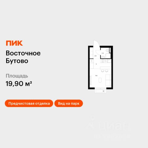 Продаётся квартира-студия площадью 19,9 кв.м на 13 этаже 17 этажного дома (Корпус 48, Секция 2) проекта ПИК Восточное Бутово. Светлый просторный подъезд на уровне земли, функциональная планировка, большие окна, предчистовая отделка. Жилой квартал "Восточное Бутово" расположен в 5 км от МКАД по Симферопольскому шоссе, в Ленинском районе Московской области. Это экологически благоприятное место по соседству с Бутовским лесопарком. В 25 минутах на машине - станции метро и МЦД "Бутово". В "Восточном Бутово" уже открылись пять детских садов из десяти запланированных и одна школа из четырёх. Внутри квартала будет две поликлиники, одна из которых уже работает. В проекте два пешеходных бульвара - по одному из них уже можно гулять и кататься на велосипеде. В закрытых дворах-парках не будет автомобилей - мы построим многоуровневый паркинг, чтобы сделать район ещё более комфортным и безопасным для жителей. Артикул 641859 (Застройщик ООО "Лотан")