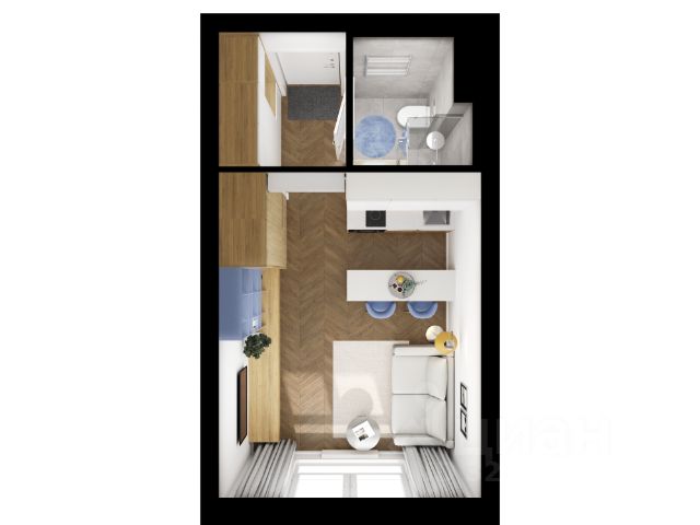 Продаётся студия 369, площадью 30,22 м², на 3 этаже в ЖК "Живописный" корпус 2.2. Стоимость — от 6509152 руб. Квартира без отделки, планировка односторонняя, окна на улицу.