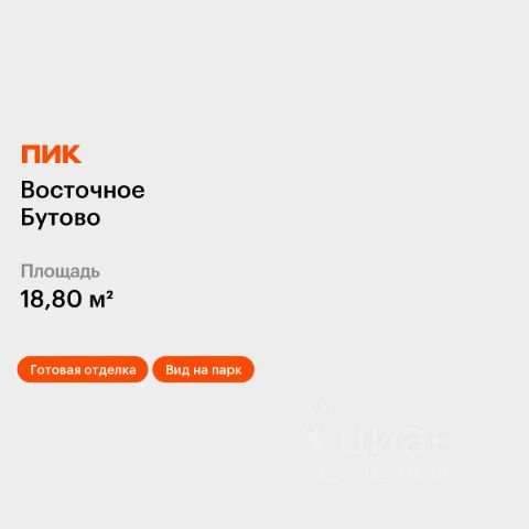 Продаётся квартира-студия площадью 18,8 кв.м на 13 этаже 25 этажного дома (Корпус 47, Секция 1) проекта ПИК Восточное Бутово. Светлый просторный подъезд на уровне земли, функциональная планировка, большие окна, c отделкой. Жилой квартал "Восточное Бутово" расположен в 5 км от МКАД по Симферопольскому шоссе, в Ленинском районе Московской области. Это экологически благоприятное место по соседству с Бутовским лесопарком. В 25 минутах на машине - станции метро и МЦД "Бутово". В "Восточном Бутово" уже открылись пять детских садов из десяти запланированных и одна школа из четырёх. Внутри квартала будет две поликлиники, одна из которых уже работает. В проекте два пешеходных бульвара - по одному из них уже можно гулять и кататься на велосипеде. В закрытых дворах-парках не будет автомобилей - мы построим многоуровневый паркинг, чтобы сделать район ещё более комфортным и безопасным для жителей. Артикул 642517 (Застройщик ООО "Лотан")