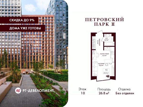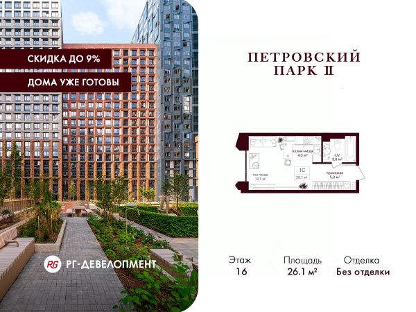 Дом сдан. Ключи в день покупки! В продаже студия площадью 27.10 м² с чистовой отделкой на 24 этаже 36 этажного дома в корпусе Сиена. ЖК Симфония 34 - концептуально новый жилой комплекс премиум-класса с подземной парковкой, состоит из четырех башен высотой 36 - 54 этажа. Квартиры сдаются с дизайнерской чистовой отделкой MR READY с встроенными кухнями и премиальной техникой. Приобретение квартиры с чистовой отделкой позволяет избежать лишних хлопот, ведь включает в себя установку мебели и бытовой техники на кухне, что является дополнительным бонусом. Высота потолков 3 - 6 метров, окна высотой до 2,6 м. Более 100 кладовых в подземной части ЖК и более 500 на этажах. Безопасность - Система контроля входа на территорию комплекса, биометрия - Система автоматического водяного пожаротушения и противопожарного водопровода, система пожарной вентиляции - Доступ на парковку при помощи системы распознавания автомобильных номеров, карточка для контроля доступа резидентов - Система видеонаблюдения - Круглосуточная связь через приложение, телефон, голосовые сообщения с охраной, консьержем, call-центр Расположение Пешком - 6 минут до метро "Дмитровская" - 15 минут до Тимирязевского парка На машине - 5 минут до Савеловского вокзала и Аэроэкспресса в Шереметьево - 10 минут до Москва-Сити и Садового кольца Благоустройство - 70% территории отведены под зеленые насаждения и ландшафтный дизайн - Приватный Японский сад - Детские площадки с зонированием по возрасту - Clubhouse для резидентов - Wellness & SPA - Зона для пикника, зона с гамаками - Центральное лобби, ресторан, коммерческие помещения - Дополнительный вход/выход на территорию комплекса Окружение - В 10 минутах от Symphony 34 находится дизайн-завод Flacon, где регулярно проходят культурно-образовательные и развлекательные мероприятия - Тимирязевский парк расположен в 850 м. Площадь парка 232 га - Рядом расположен парк "Дубки", площадью 16,5 га - В 15 минутах расположен Хлебозавод 9. Здесь находятся шоурумы брендов, кафе разных кухонь мира, образовательные проекты и площадки для мероприятийКомпания MR предлагает своим клиентам специальные условия приобретения квартир в рамках программ ипотечного кредитования от банков-партнеров. Продам квартиру-студию в новостройке рядом с метро Дмитровская.