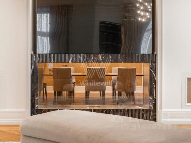 • Паркет, стеновые панели, мрамор, двери, обои и лепнина - итальянское и бельгийское