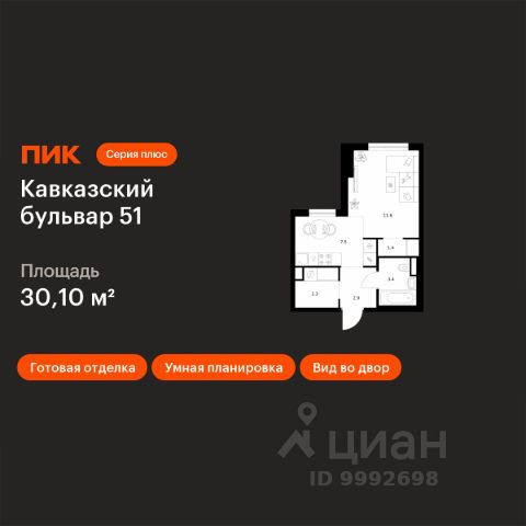 Продаётся квартира-студия площадью 19,5 кв.м на 14 этаже 17 этажного дома (Корпус 1.2, Секция 3) проекта ПИК Москворечье. Светлый просторный подъезд на уровне земли, функциональная планировка, большие окна, c отделкой.
