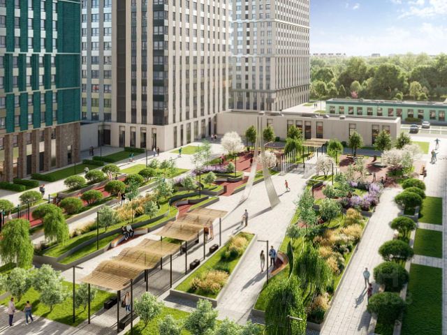 Особое внимание уделяется зоне первых этажей, где будет сформирована насыщенная городская среда. Здесь появятся общественные пространства, пешеходные галереи, коммерческие помещения и другие полезные сервисы для жителей. Точкой притяжения станет пешеходный бульвар, где будут расположены игровые площадки для детей разных возрастов и спортивные зоны.