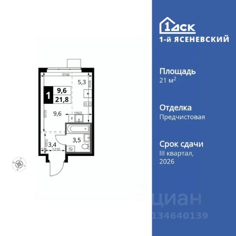 Прямая продажа от застройщика! Жилой Комплекс класса Комфорт Плюс. Продаётся квартира-студия номер 135 общей площадью 21.8 кв.м. на 15-м этаже 16 этажного здания. Отделка Whitebox. Особенности квартиры: - Квартиры рядом с метро - м. Корниловская 9 мин пешком - 63 га лесопарка за окнами - Школа c it-кластером и бассейном. 2 детских сада - Линейная планировка - максимальная функциональность и удобство. - Увеличенная ширина окна/окон - больше света и визуального простора. Квартира с предчистовой отделкой (White box). Вам не придется заниматься черновыми и трудоёмкими работы, а чистовую отделку и дизайн - сделайте на свой вкус. Информация о комплексе: В жилом комплексе комфорт-плюс класса "1-го Ясеневского" доступны преимущества двух стилей жизни. Ведь в пешей доступности метро, школа с 25-метровым бассейном и IT-кластером и при этом целых 63 га благоустроенного Троицкого лесопарка под окнами, где так приятно дышать свежим воздухом и слушать пение птиц. Собственная закрытая территория "1-го Ясеневского" представляет собой уютный оазис. Здесь и зеленый освещенный бульвар для прогулок, система велодорожек, маленькая городская площадь, кафе, пекарни и кофе поинты. А еще дворы без машин и многоэтажная парковка. Изюминка территории - фруктовые деревья во дворах и городские сады. "1-й Ясеневский" - всего в 1 км от МКАД, на территории новой Москвы. Жилой комплекс, где есть все необходимое для современного человека. Транспортная доступность: До метро "Корниловская" - 12 минут пешком До метро "Тютчевская" - 25 минут пешком До метро "Теплый стан" - 10 минут на транспорте До метро "Ольховая" - 30 минут на общественном транспорте Личный автотранспорт: Выезд на Калужское шоссе - 500 м МКАД - 1 км Внутренняя инфраструктура: ЖК "1-й Ясеневский" можно назвать идеальным местом для жизни семьи с детьми. Здесь буквально за домом находится Троицкий лесопарк - излюбленное место прогулок молодых родителей. А во внутренних дворах под детские площадки выделены специальные зоны. Они оборудованы всем, что нужно для счастливого детства: современными и максимально безопасными качелями, песочницами и лазалками. Оборудование и игровые сценарии на детских площадках спроектированы вместе с командой детских психологов для правильного развития ребенка и для повышения их интереса. Также рядом с домом два детских садика, один из которых уже построен и школа на 1100 мест. Школу по праву можно назвать образцовым учебным заведением. В ней закладываются основы успешного будущего. Здесь есть класс робототехники, IT-кластер, 25-метровый бассейн и прекрасно оборудованные спортзалы.
