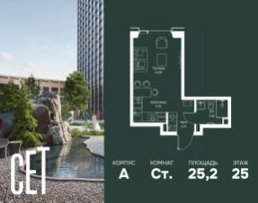 О квартире Продаётся студия общей площадью 25.12 кв. м. с отделкой на выбор: черновая, White Box. Квартира на 13 этаже корпуса 5 в жилом комплексе бизнес-класса "Среда на Кутузовском". До метро "Кунцевская" 10 минут пешком. Исторический зелёный район "Среда на Кутузовском" строится в Кунцево - историческом и экологически чистом районе Москвы. Здесь нет крупных производств, много лесных массивов и роза ветров, которая обеспечивает приток чистого воздуха. Район наполнен жизнью и уже развит: много детских садов и школ, поликлиники, магазины, кафе, спортивные объекты, парки. - 10 минут пешком до станции метро "Кунцевская". - 5-8 минут на машине до Кутузовского проспекта и Можайского шоссе и 10-15 минут до Рублёвского и МКАД. - 15 минут езды до Крылатских холмов, Суворовского парка и заказника "Долина реки Сетунь". Акции и спецпредложения - Выгода 12%: если внести 100% оплату или оформить семейную ипотеку под 6%. Действует до 13 апреля. - Низкие ставки по ипотеке: 0,1% в первый год или 0,11% в первые два года кредита. - Трейд-ин от "Среды": можно обменять свою текущую квартиру на новую. - Ипотека для семей с детьми: если ребёнку до 7 лет, предлагаем льготную ставку 3,5% О жилом комплексе "Среда на Кутузовском" - новый квартал с башнями от 12 до 44 этажей, окружённый лесными массивами и историческими усадьбами старой Москвы. Во внутреннем дворе есть водоём, многоуровневые зоны с детскими и спортивными площадками, коворкинг на свежем воздухе и локации для уединённого отдыха. Особенности - Архитектура с многослойными фасадами. - Квартиры с террасами и мастер-спальнями. - Окна в пол на всех этажах. - Общественные лаунж-гостиные. - Собственный ландшафтный парк во дворе. - Зоны барбекю и площадки для отдыха у воды. - Умный подземный паркинг. - Стрит-ритейл на первых этажах. Купить квартиру-студию в новостройке рядом с метро Кунцевская.