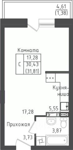 ! Апартаменты ! Просторная студия с большим окном 1,8м. х 2,4м. с предчистовой отделкой 27,09 кв.м. Ввод в эксплуатацию в 2026г.!