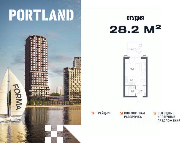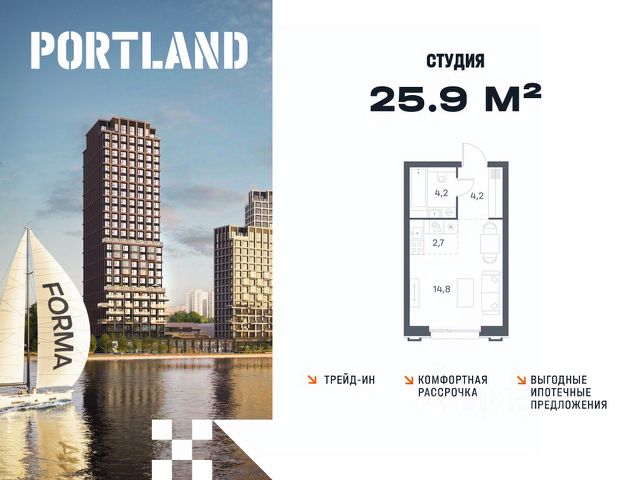 Цены указаны с условием 100% оплаты и стандартной ипотеки. Продаётся студия, 2 этаж в жилом комплексе бизнес-класса Portland от девелопера FORMA. ЖК расположен на берегу Москвы-реки в северной части района Печатники в акватории Южного речного порта. Основные преимущества проекта: • Самая протяженная береговая линия реки в Москве 13 км. • Вид на реку в сторону запада панорамные окна на самое широкое водное пространство Москва-реки (900 м) и на закат. • 95% квартир с видом на воду. • К Portland не примыкает крупных автомагистралей - отсутствие фонового шума дорог. • В перспективе ближайших 11 лет на территории района запланировано грандиозное преобразование и комплексное развитие. • Собственная набережная длиной 412 м., которая после завершения строительства сомкнется с эко-парком Печатники. • Прямой выход к воде и отсутствие проезжей части между Portland и береговой линией. • Инфраструктурное разнообразие: супермаркеты, крупные торговые центры, рестораны, кафе, фитнес-клубы, бьюти-салоны, компании сферы услуг и многое другое. • Собственная школа на 300 мест и детский сад на 275 мест. • Паркинг на 650 м/м • Транспортная вседоступность: метро, авто, велосипед, речной трамвай, канатная дорога • 15 мин. пешком до м. Печатники, 15 мин. на авто до ТТК, 20 минут на авто до Садового кольца Продам квартиру-студию в новостройке рядом с метро Люблино.